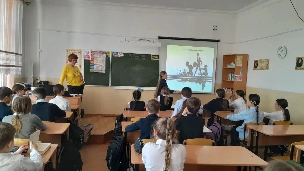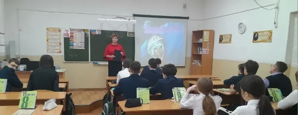 Ведущая рассказала ребятам о научных достижениях нашей страны в космонавтике, о первом космонавте Земли Ю.Гагарине.