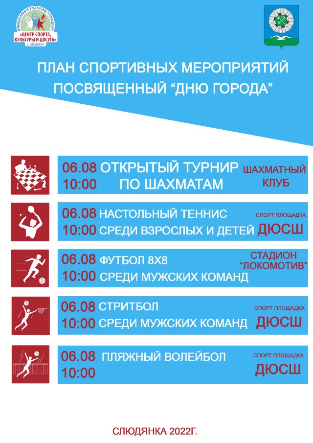 Приглашаем вас принять участие в спортивных мероприятиях, посвященных Дню города 06 августа 2022 г.