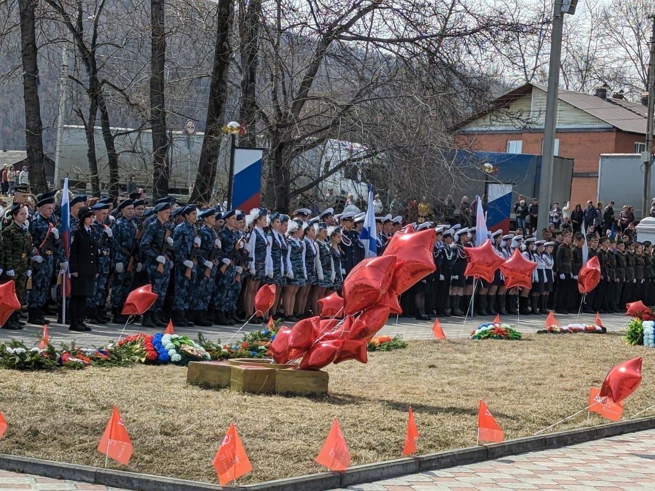 Почетное право внести знамя Победы было предоставлено военнослужащим. Украшением митинга стали юнармейцы школ города. Предприятия, организации, дети войны и жители города возложили к мемориалу гирлянды и цветы в память о павших земляках в годы Великой Отечественной Войны и погибших в зоне СВО.