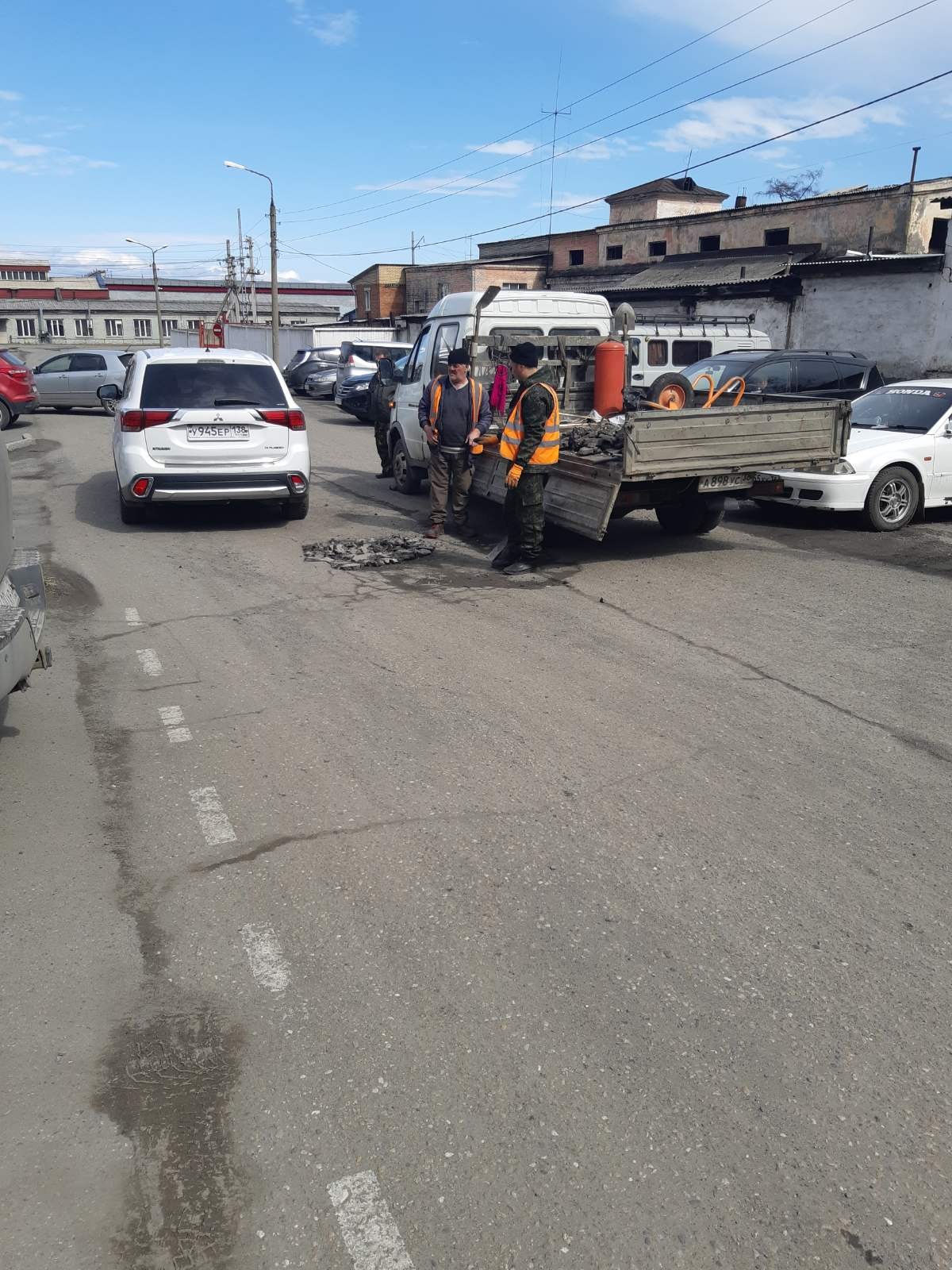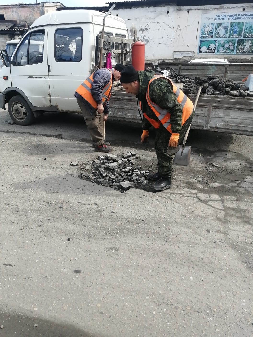 Ямочный ремонт дорожного полотна :ул.Бабушкина 1б,ул.Московская...