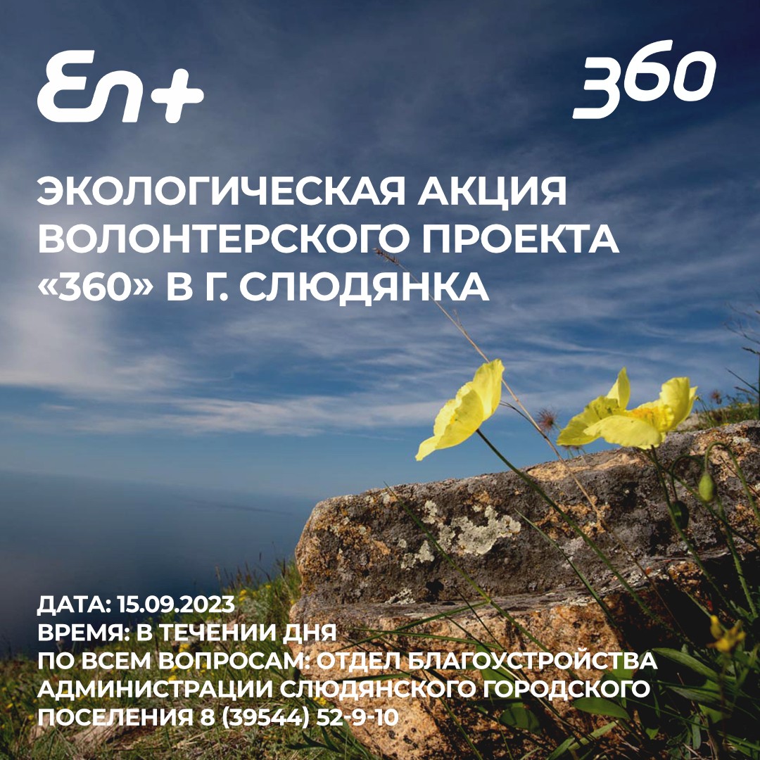 Администрация Слюдянского городского поселения сообщает Вам, о том, что 15 сентября 2023 года будет проходить экологическая акция «360» по уборке прибрежных территории озера Байкал от мусора. Предлагаем всем желающим принять участие.