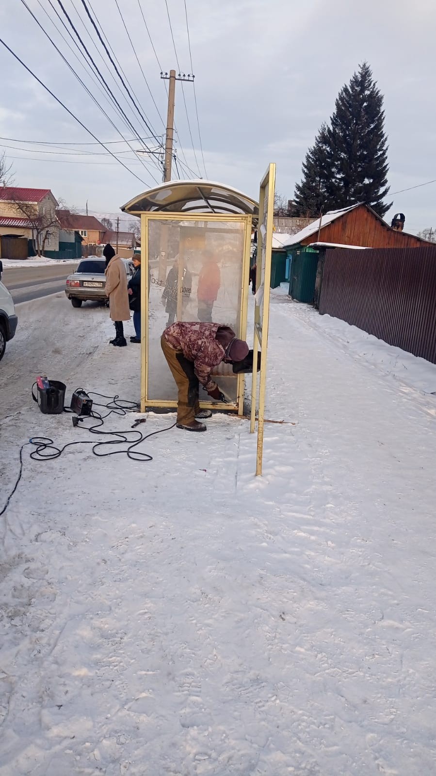 Ремонтные работы остановочного пункта ,после вандализма