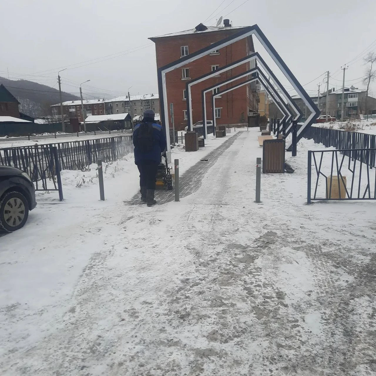 Монтаж уличной гирлянды (береговая линия),заливка катка (ст.Перевал),ежедневная уборка снега и наледи (общественные территории).