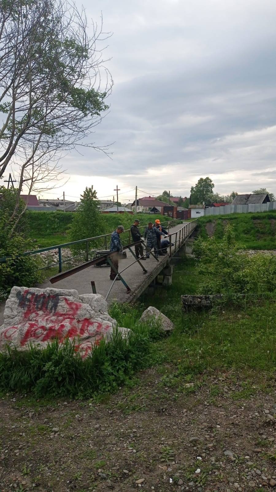Замена ДНАТ светильника (ул.Черёмуховая),спил аварийной ветки (ул.Амбулаторная 10),ямочный ремонт дорожного полотна (ул.Советская),восстановили ограждение пешеходного мостика (ул.Первомайская)