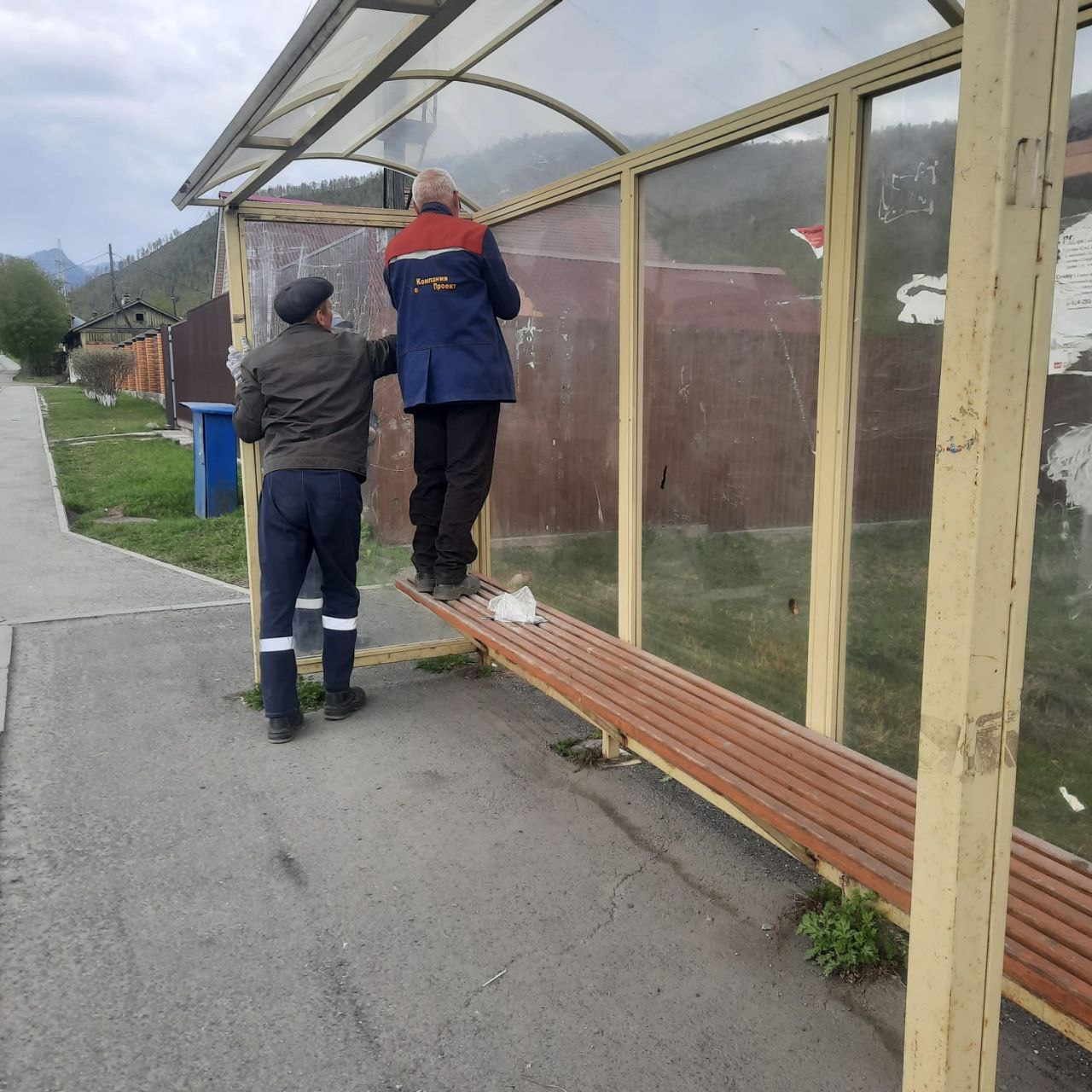 Ремонтные работы остановочного пункта,уборка мусора по городу,демонтаж ограждения (ул.Советская).