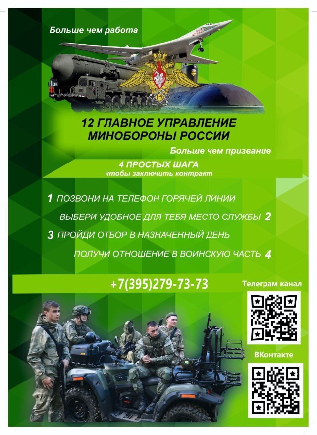 12 Главное Управление Министерства обороны объявляет набор военнослужащих для прохождения службы по контракту в сферах: реагирования на чрезвычайные ситуации, транспортировки, связи и аварийно-спасательных операций.