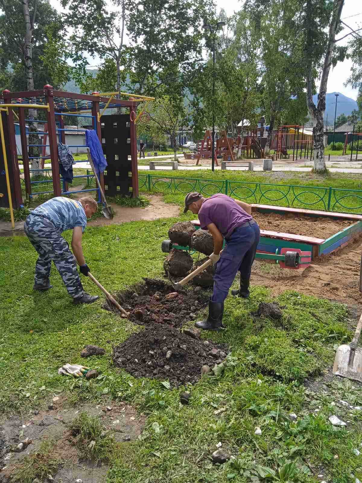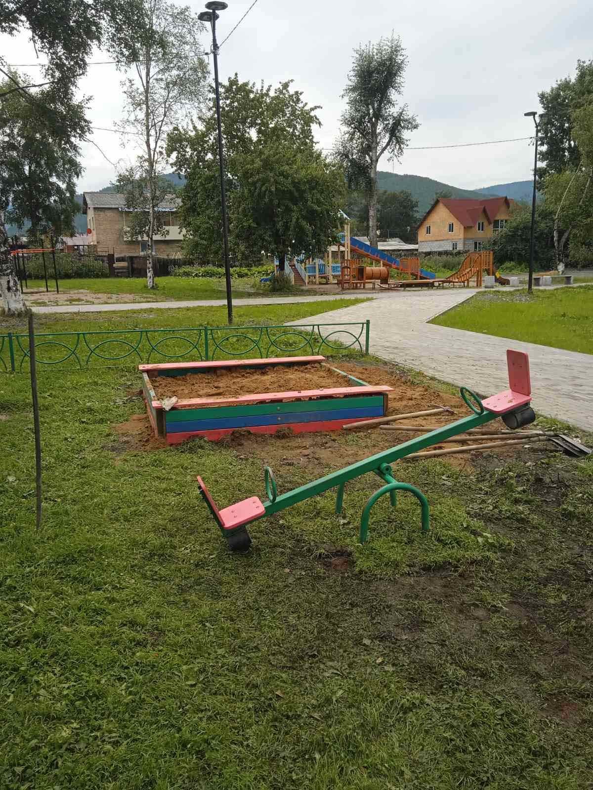 Переустановка песочницы и качели-балансир.п.Железнодорожник