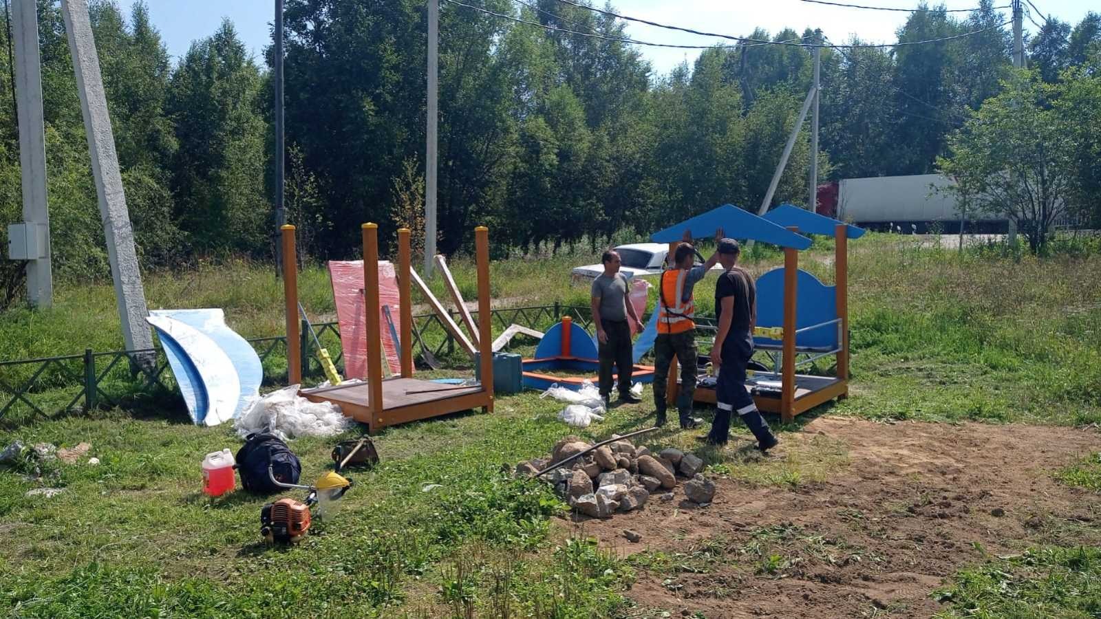 Установка детского игрового комплекса (п.Буровщина),устраняем последствия непогоды в городе.