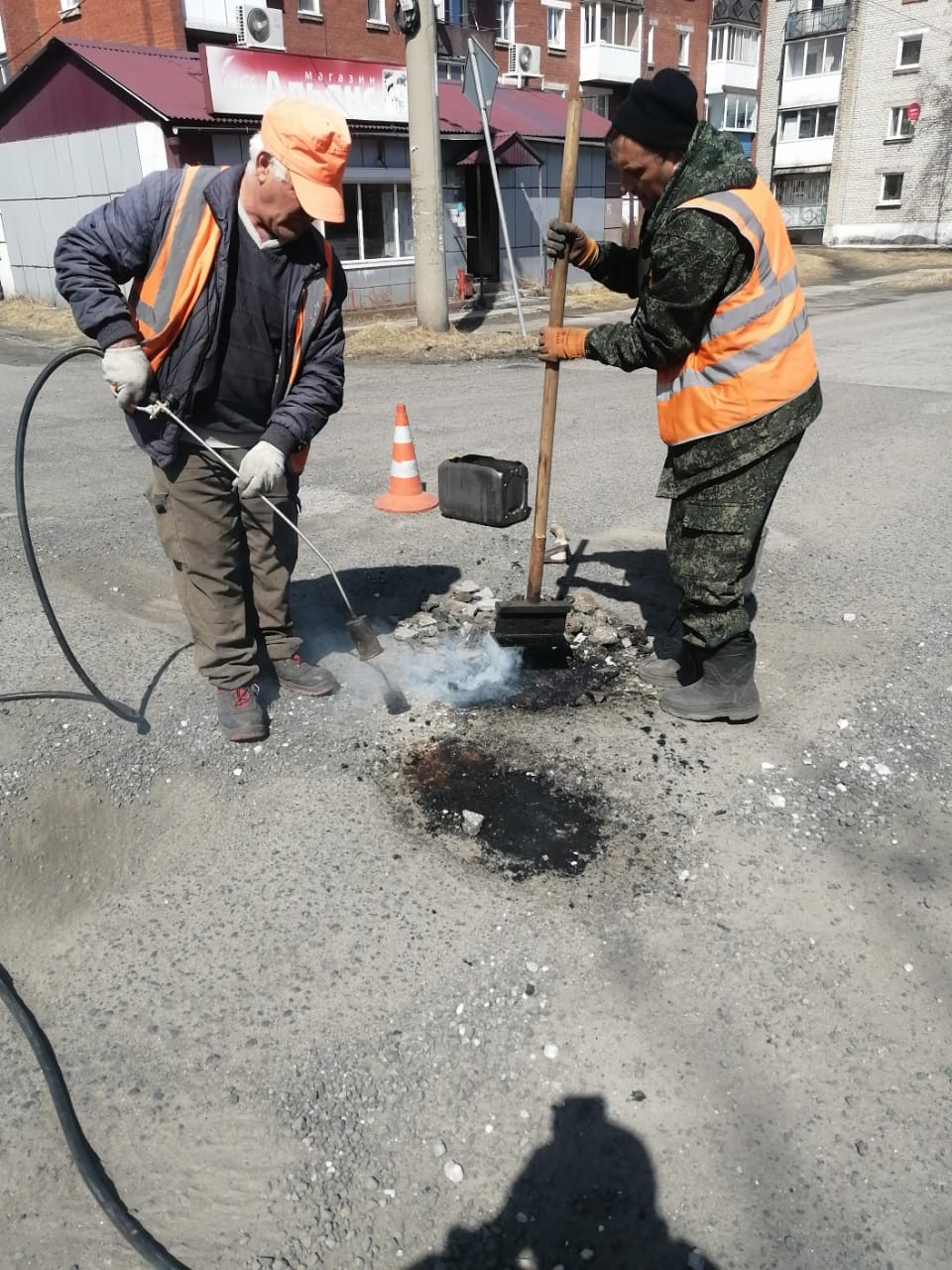 Ямочный ремонт дорожного полотна ул.Ленинградская