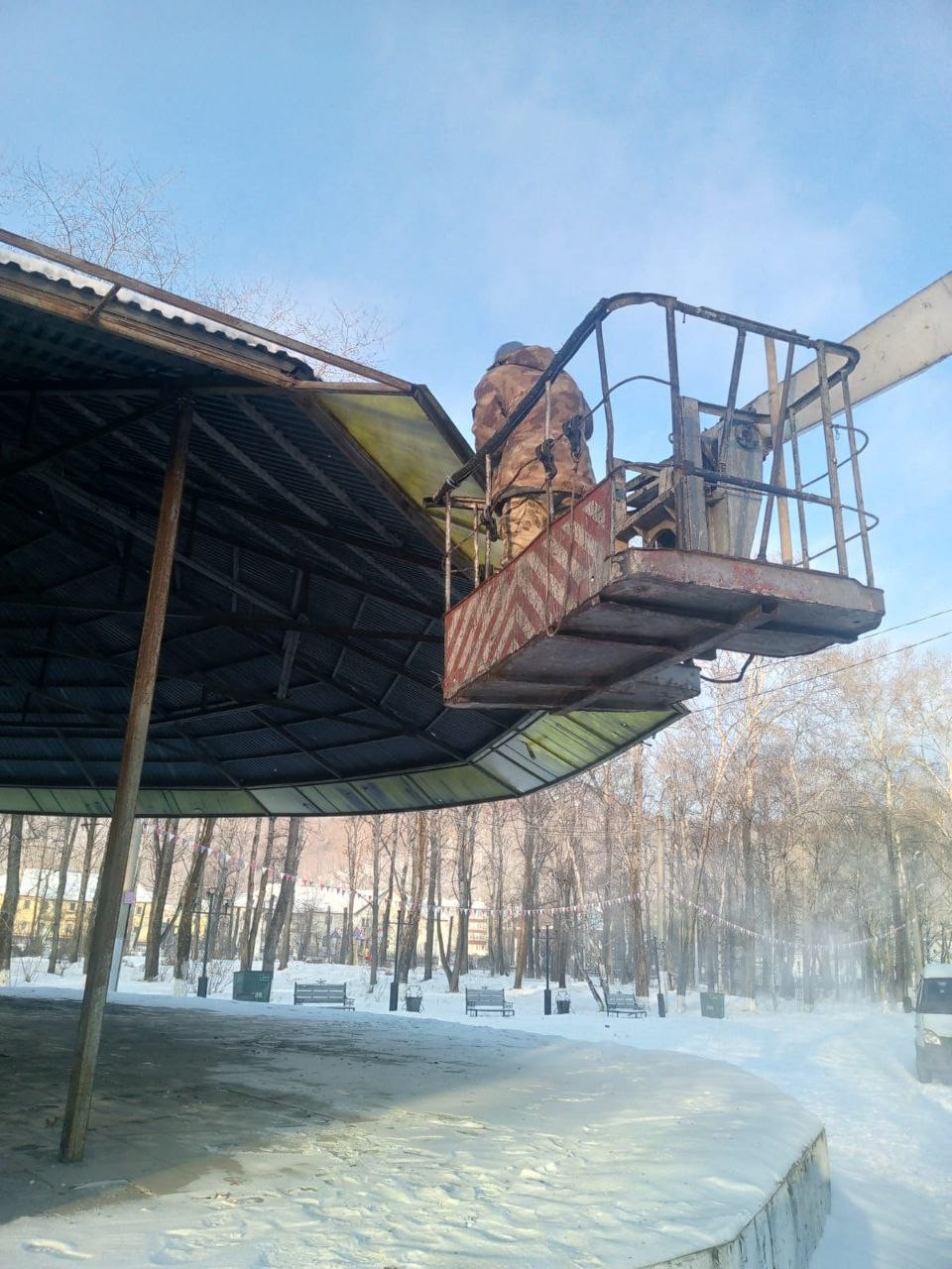 Демонтаж сцены (п.Перевал),уборка снега по городу.