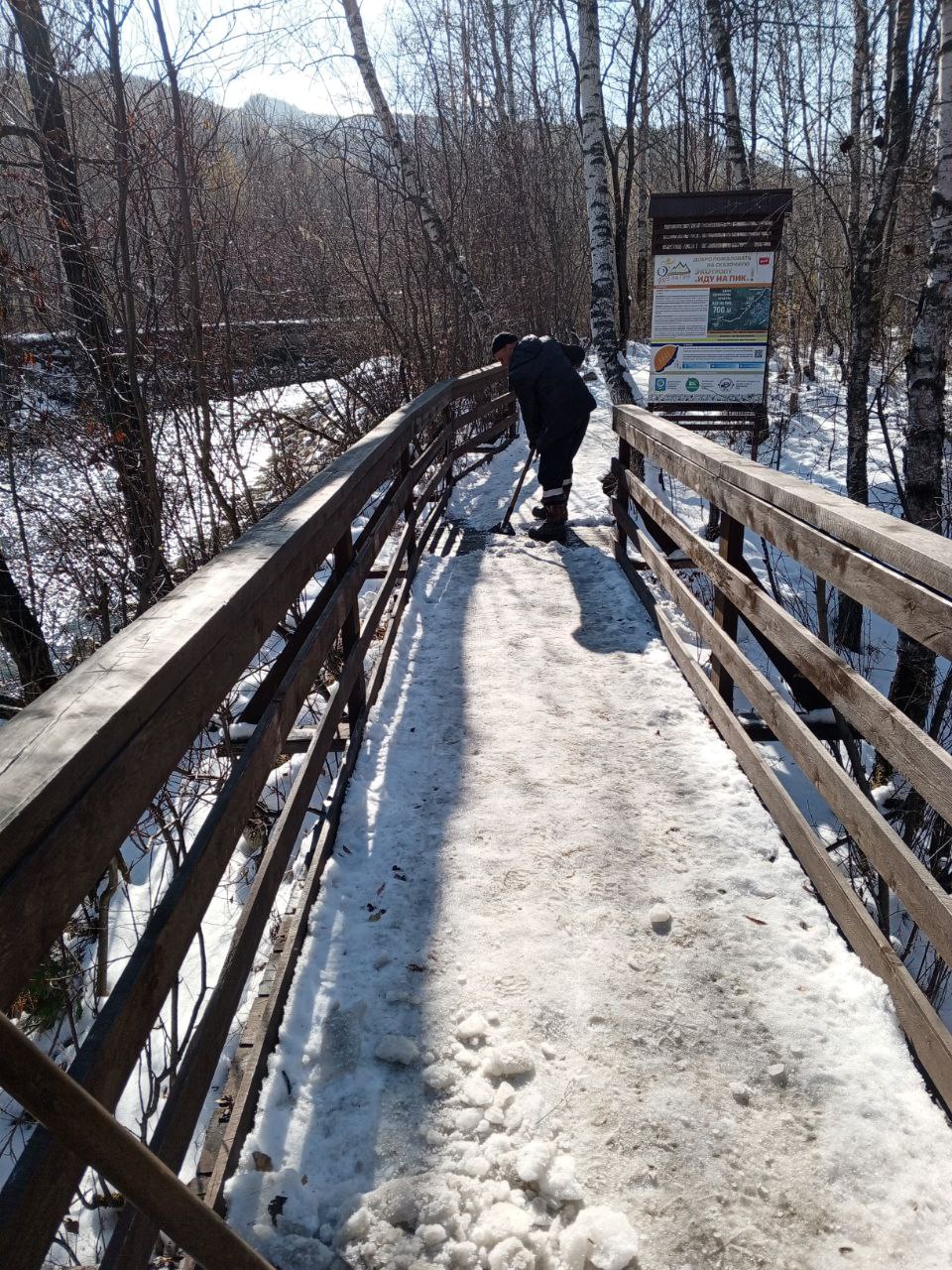 Ремонт качели "гнездо"(береговая линия),ямочный ремонт,уборка снега и наледи (экотропа).