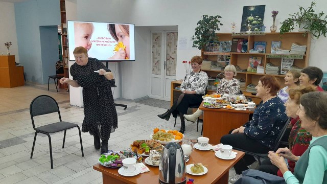 Праздник продолжился литературно-поэтической композицией "С любовью к маме!", которую представила ведущая. Затем гости пили чай с пирогами и конфетами, читали любимые стихи о маме, активно участвовали в разных конкурсах, играх и викторинах, выполняли задания в "Весёлых фантах".