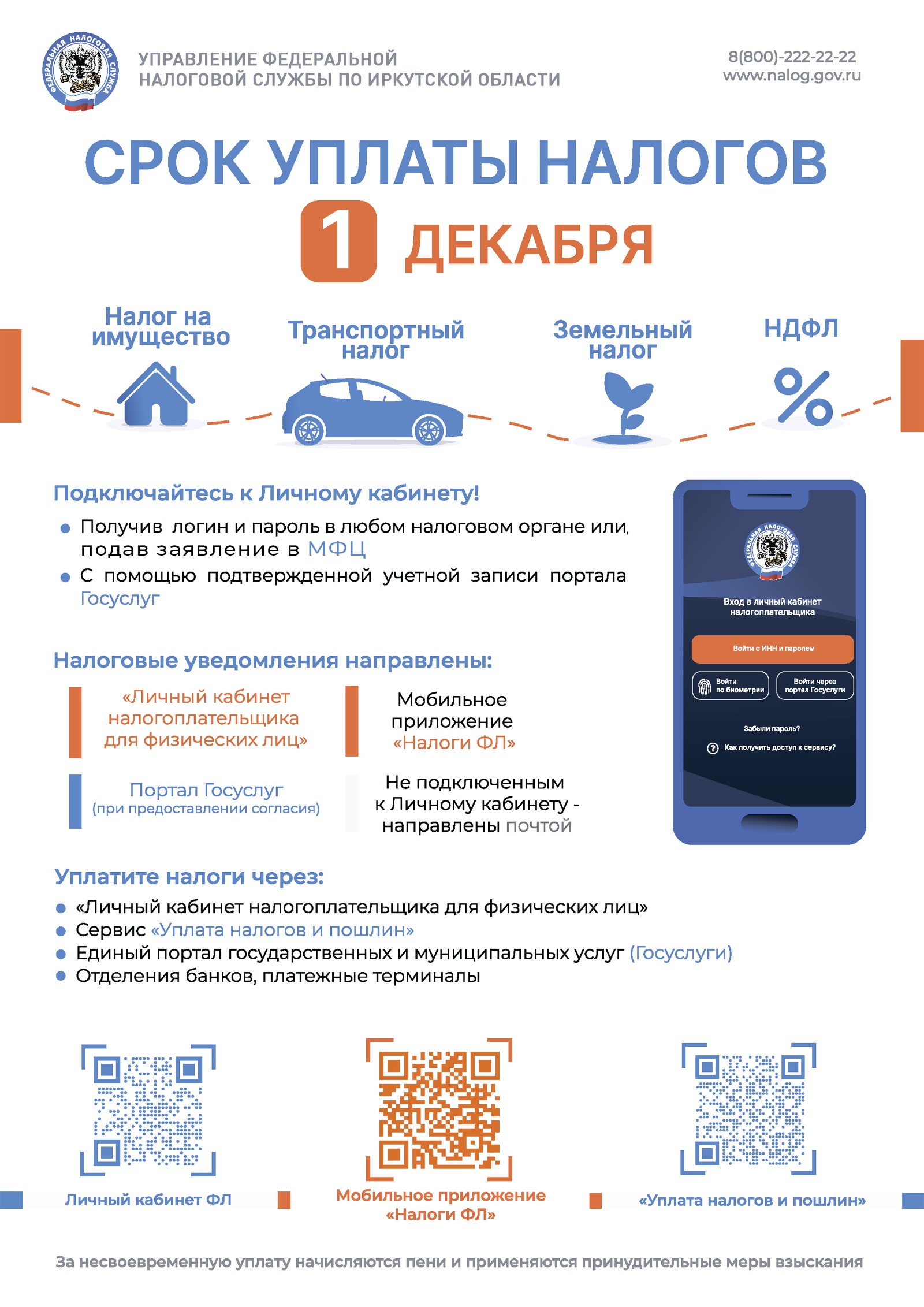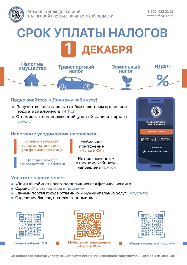 СРОК УПЛАТЫ НАЛОГОВ ДЛЯ ФИЗИЧЕСКИХ ЛИЦ — 1 ДЕКАБРЯ!