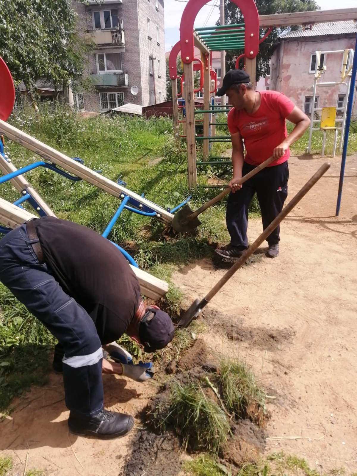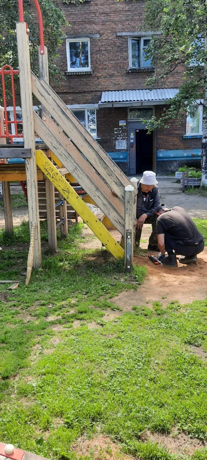 Ремонтные работы детских игровых комплексов (ул.Ленина 97,ул.Амбулаторная 6),ежедневная косьба растительности.