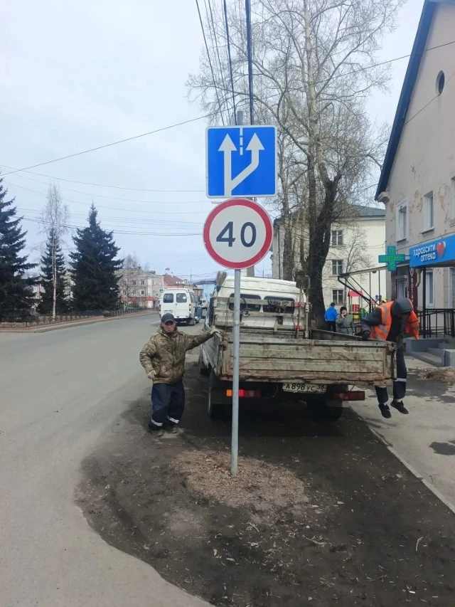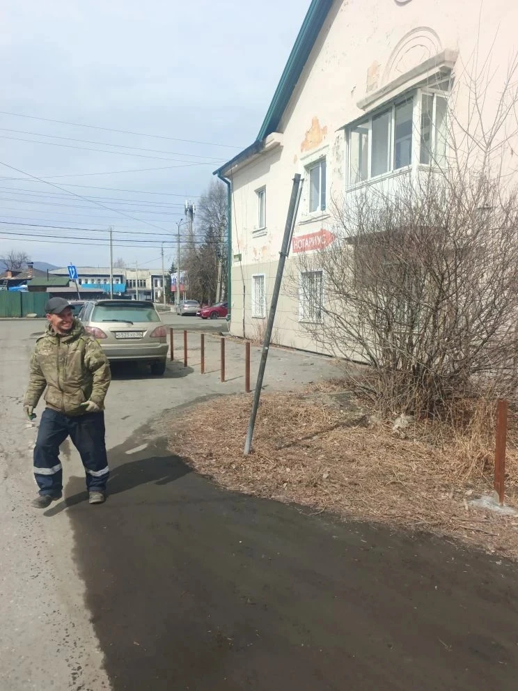Ремонт оборудования на Д.П (ул.Ленина 22),правим положение дорожных знаков,уборка мусора (общественные территории города).