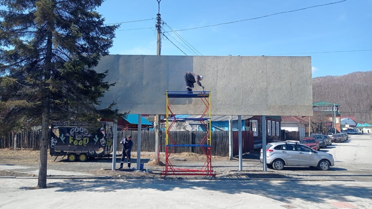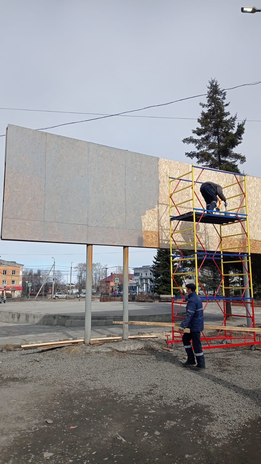 Завершаются работы по ремонту баннерного стенда ц.площадь