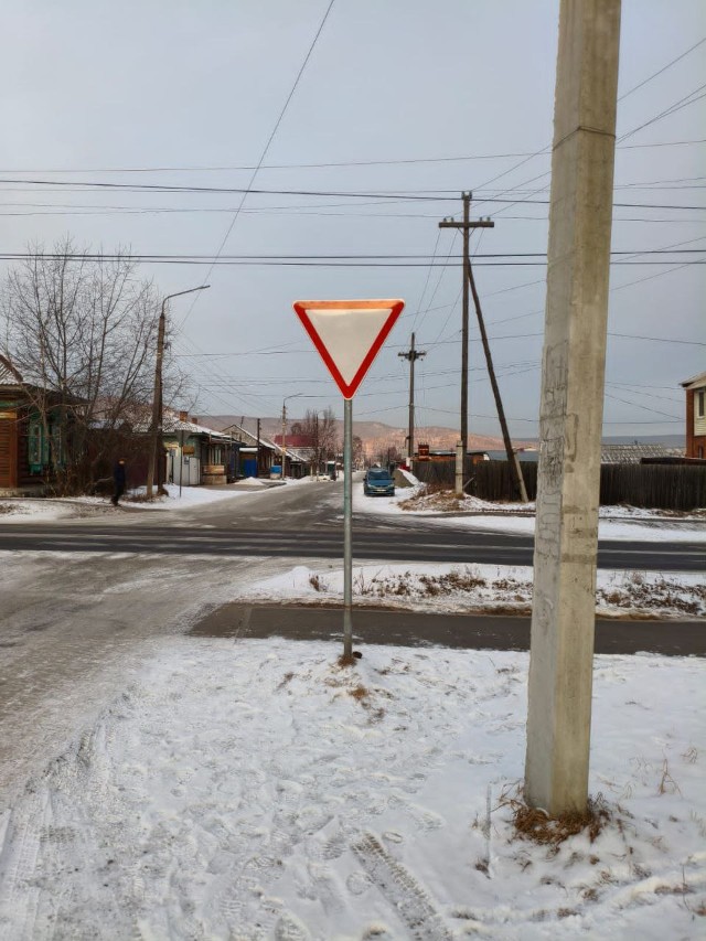 Подсыпка дорожного полотна (горная часть),замена дорожного знака (ул.Комсомольская).