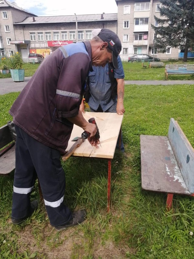Устройство опоры (пешеходный мостик ,м-он квартал),ремонт оборудования на детской площадке(ул.Советская)