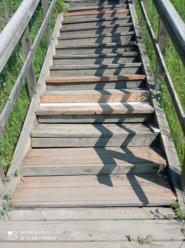 Ремонт пешеходной лестницы (м-он Берёзовый),продолжаем ямочный ремонт дорожного полотна.
