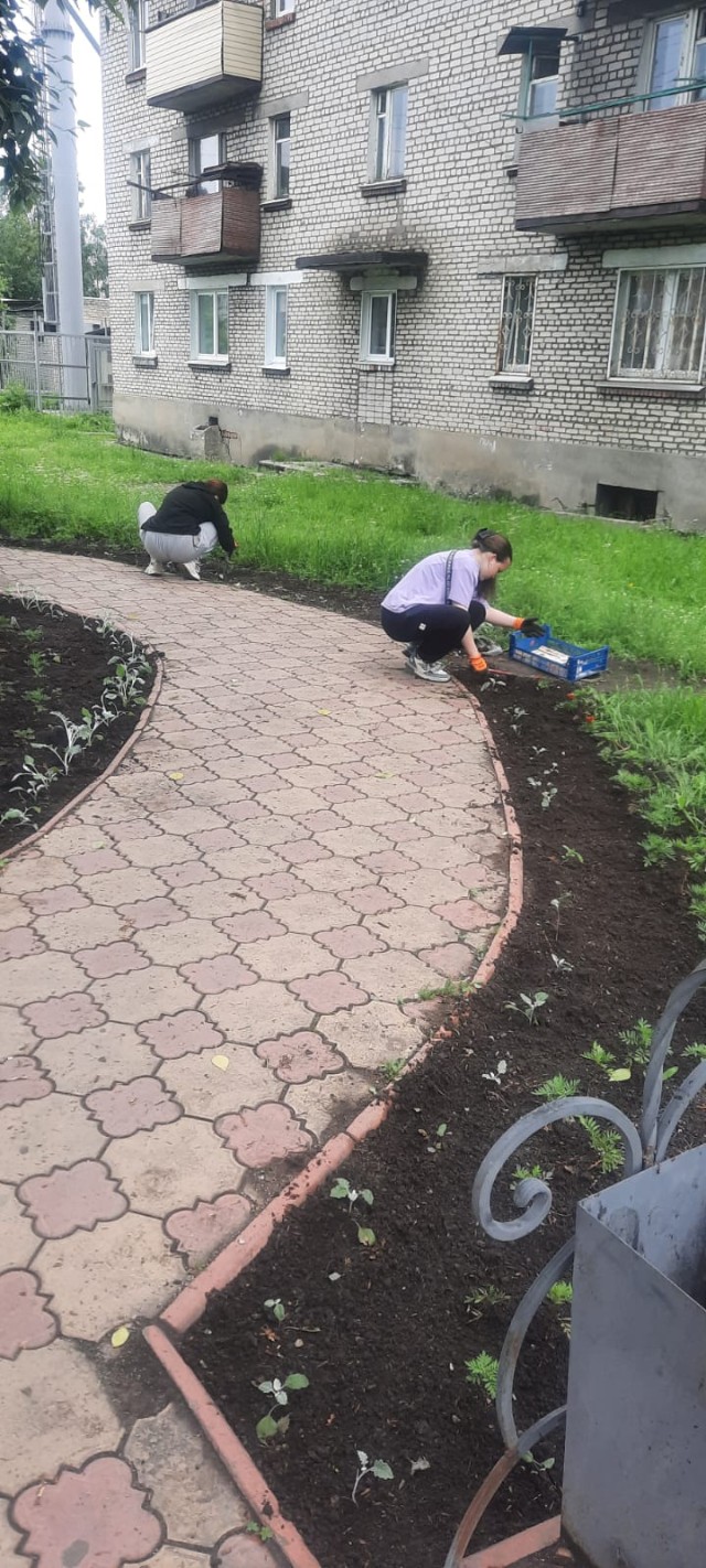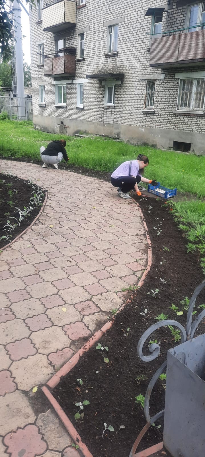 Вывоз несанкционированной свалки (ул.Кутелева),прополка саженцев,завершаем установку ограждения (ул.Комсомольская),продолжаем завозить песок по детским площадкам.