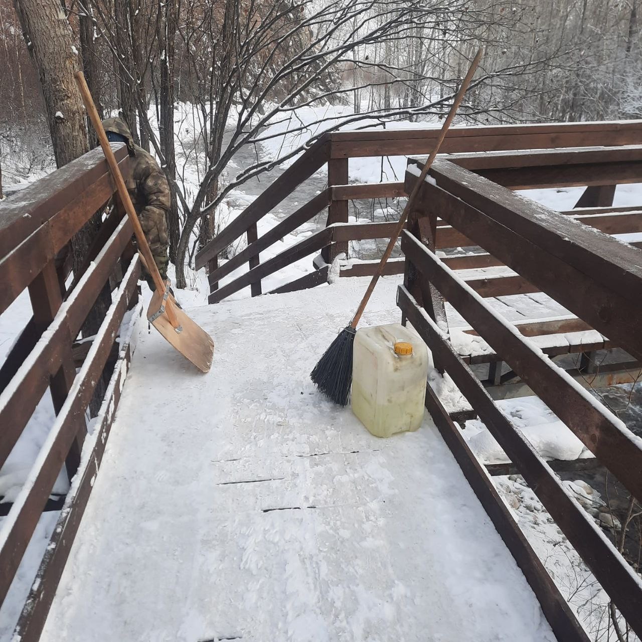 Изменили направление дорожного знака (ул.Парижской Коммуны),ремонт пешеходного мостика (ул.Кирова 38),чистка пешеходной лестницы (м-он СМП),чистим каток (стадион Перевал),подсыпка дорожного полотна (пер.Телевизионный,шк.№1,ул.Советская,ул.Куприна),уборка снега (экотропа).