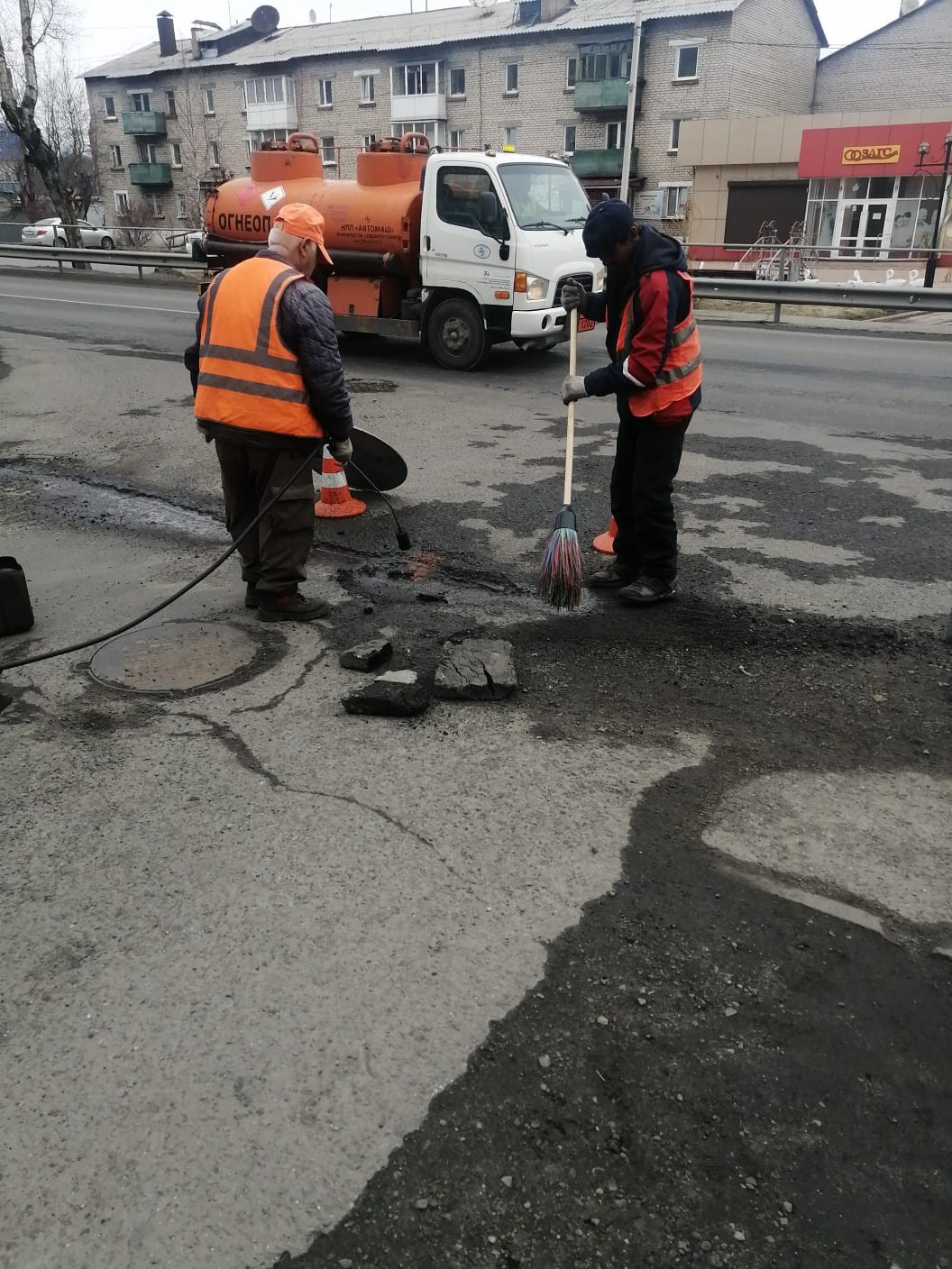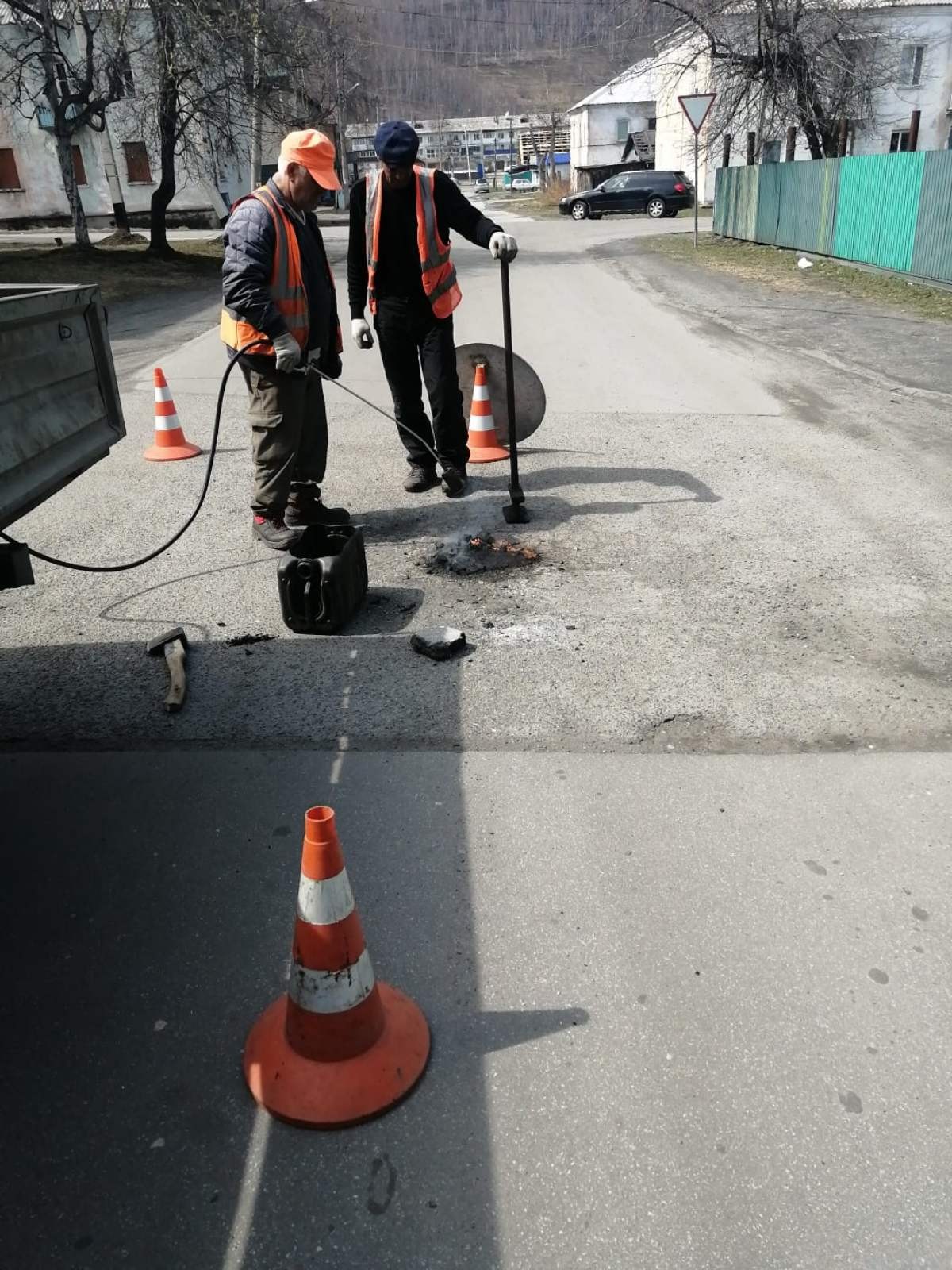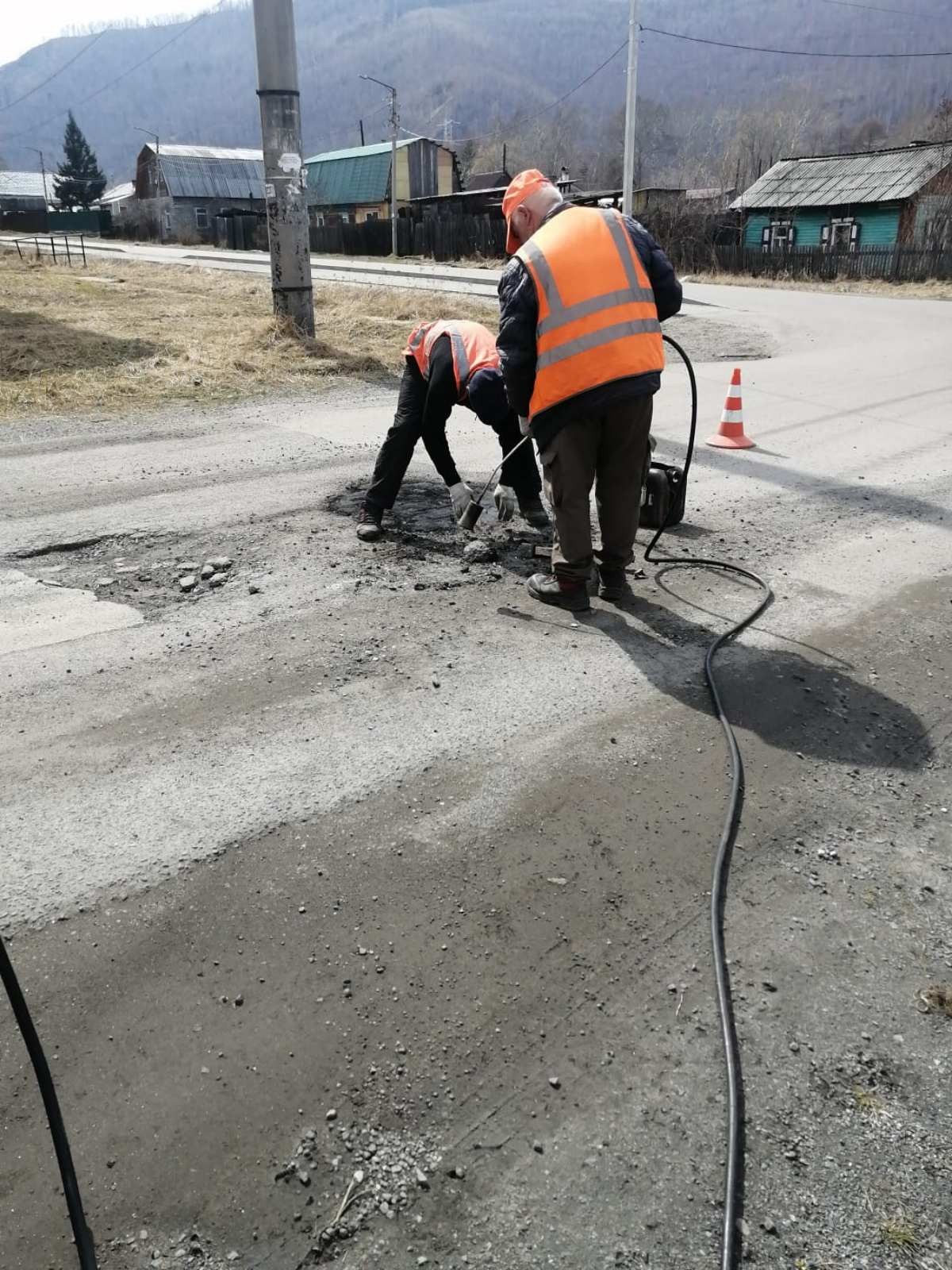 Ямочный ремонт дорожного полотна по следующим адресам:ул.Слюдянских Красногвардейцев,пер.Рудничный,ул.Лёни Полуяхтова