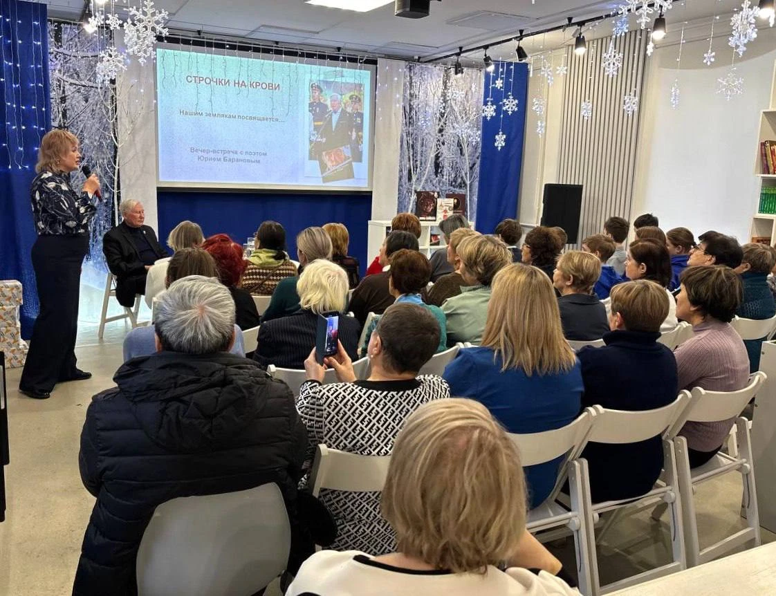 17 декабря Библиотека семейного чтения совместно с Советом женщин Слюдянского района провели встречу с писателем, поэтом, бывшим военным лётчиком, офицером в третьем поколении Юрием Ивановичем Барановым. Юрий Иванович представил свою книгу "Строчки на крови". Стихи этого сборника посвящены нашим землякам-воинам, участникам СВО, живым и погибшим.