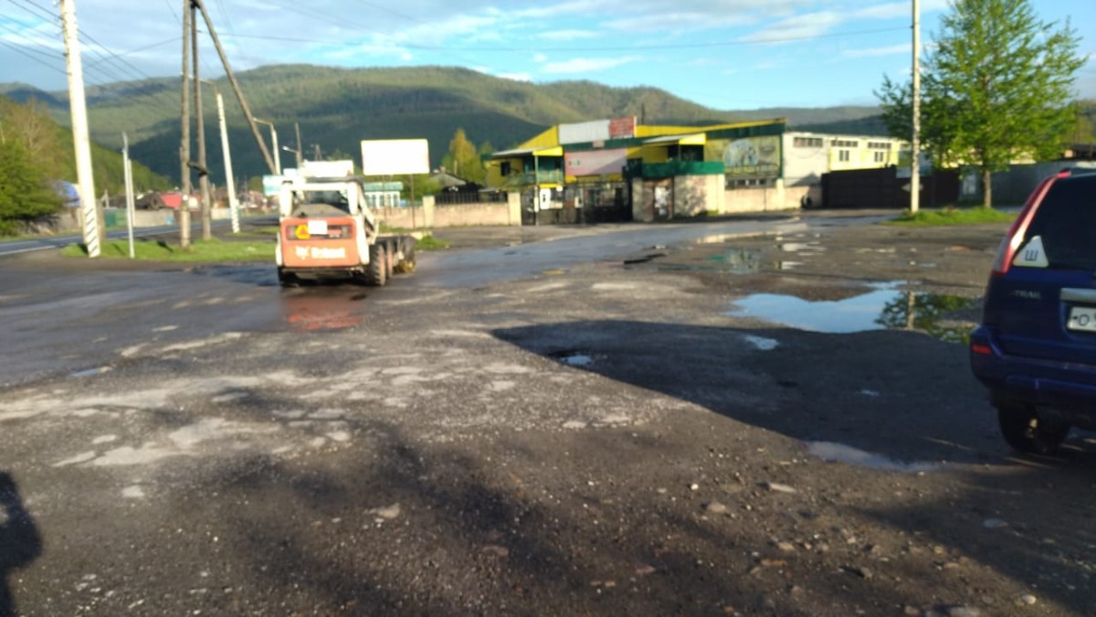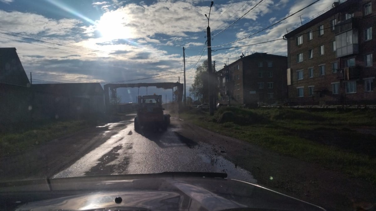 Чистка дорожного полотна от зимней подсыпки:м-он СМП,ул.Советская,ул.Карьерная