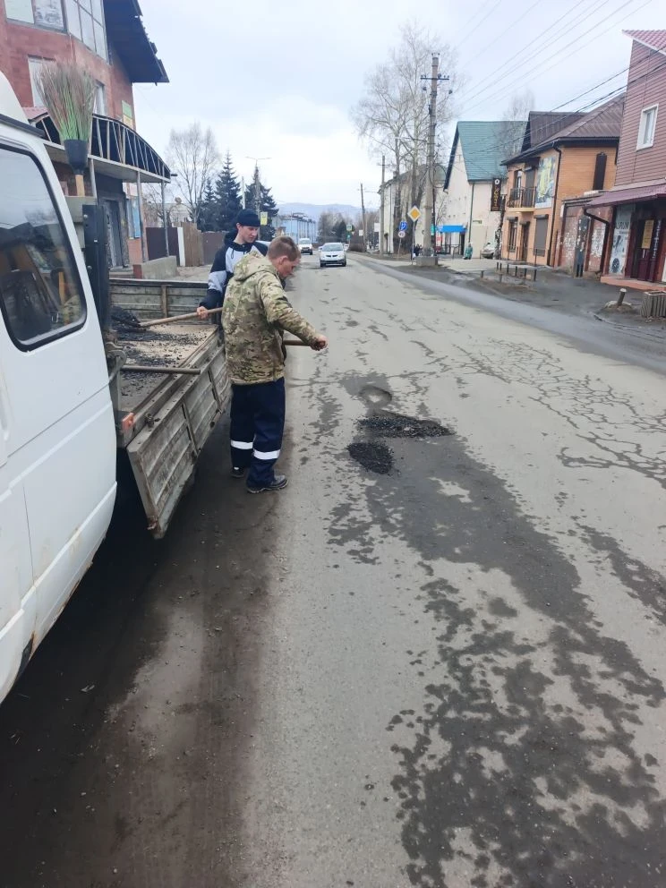 Ямочный ремонт дорожного полотна,устраняем последствия непогоды.
