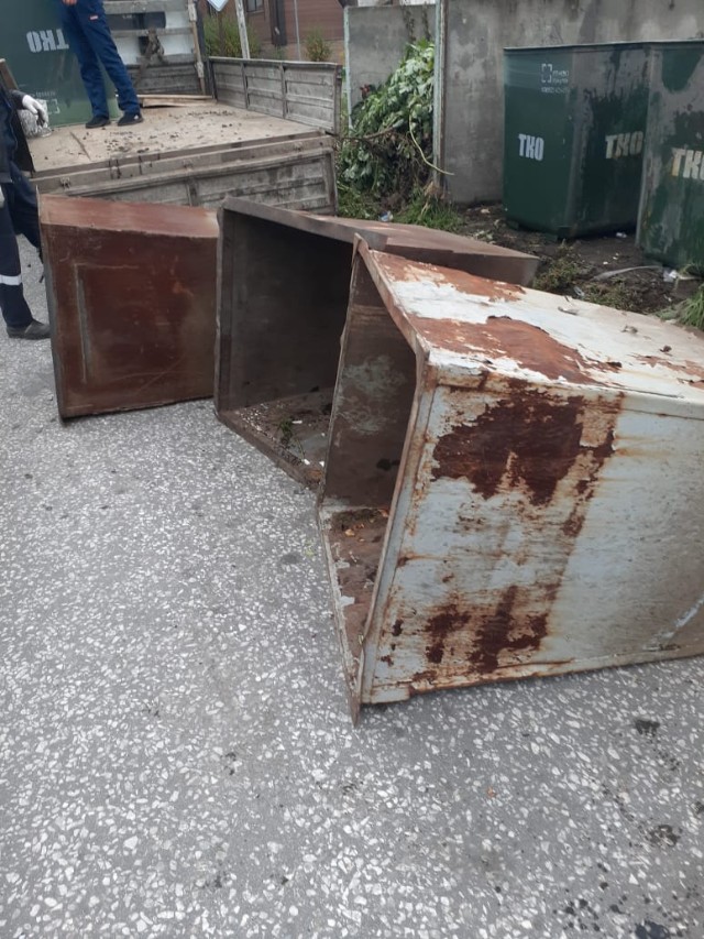 Замена мусорных контейнеров (ул.Ленинградская,ул.Кутелева),демонтаж ограждения (стадион Перевал),чистка водосточной канавы (м-он Рудо).