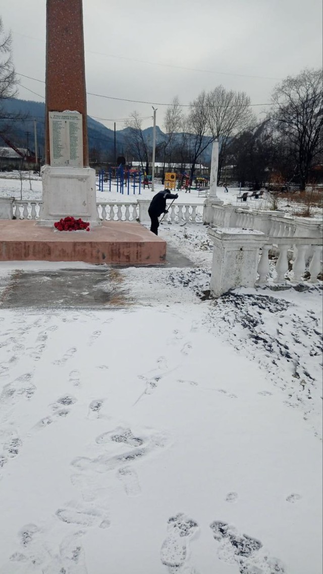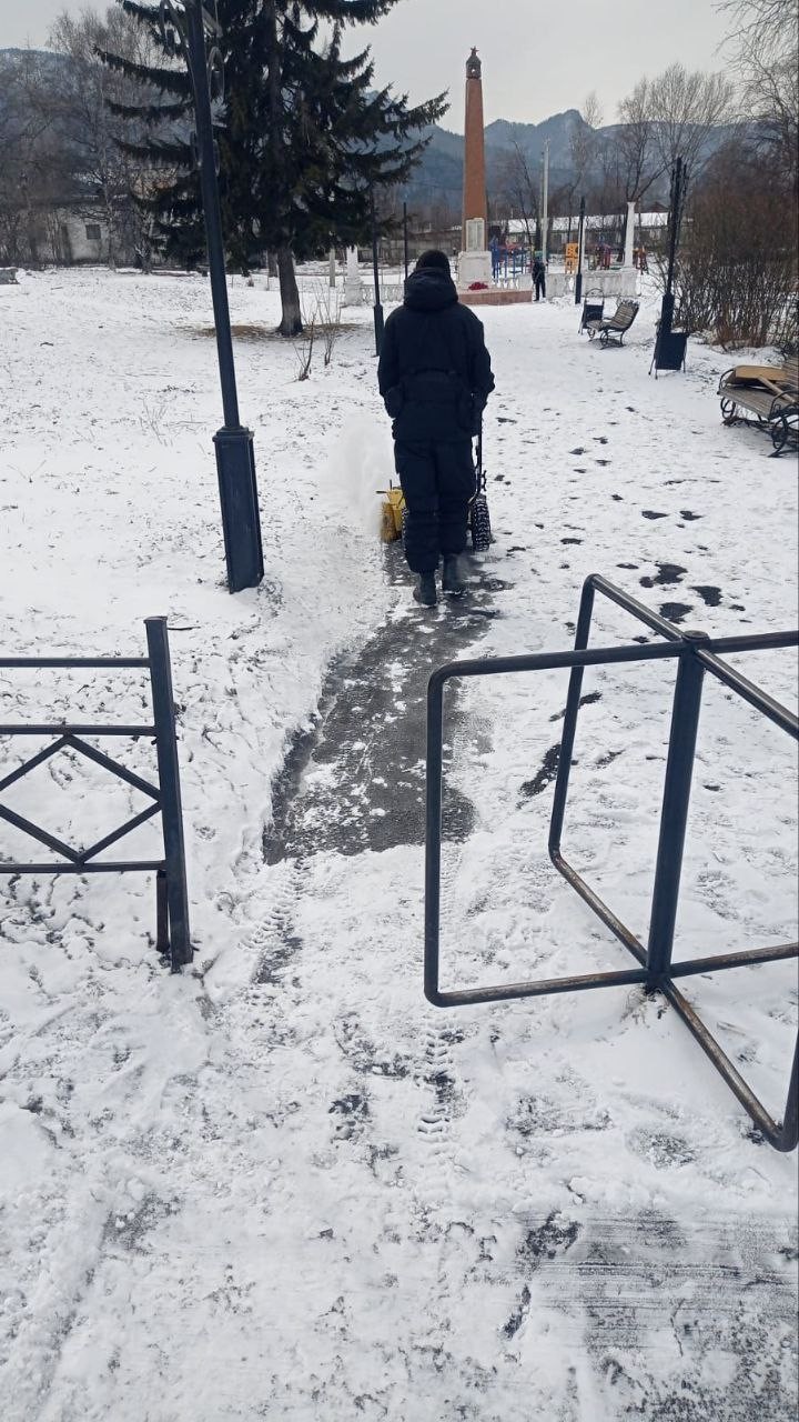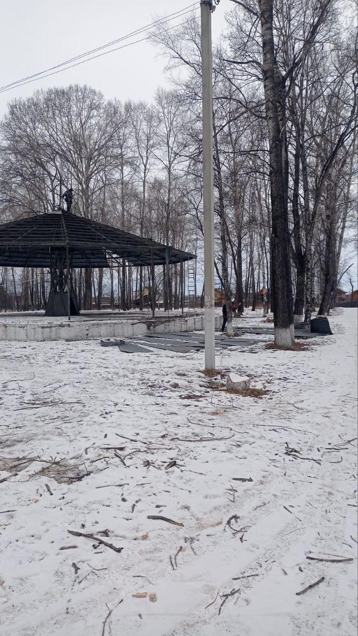 В рамках исполнения муниципального задания производим спил деревьев (п.Перевал),уборка снега (общественные территории),демонтаж сцены (п.Перевал).