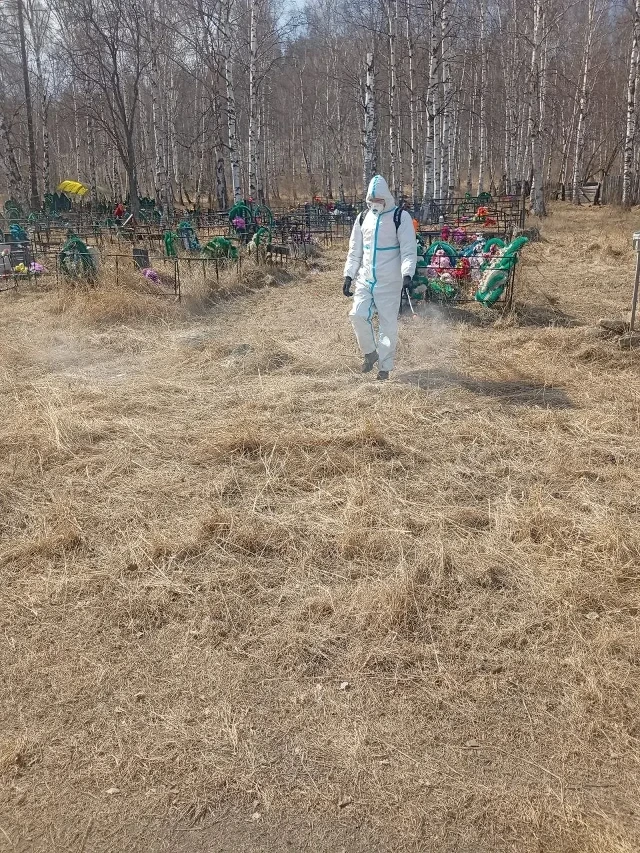 Акарицидная обработка,уборка мусора (п.Талая-кладбище),спил деревьев (п.Перевал).