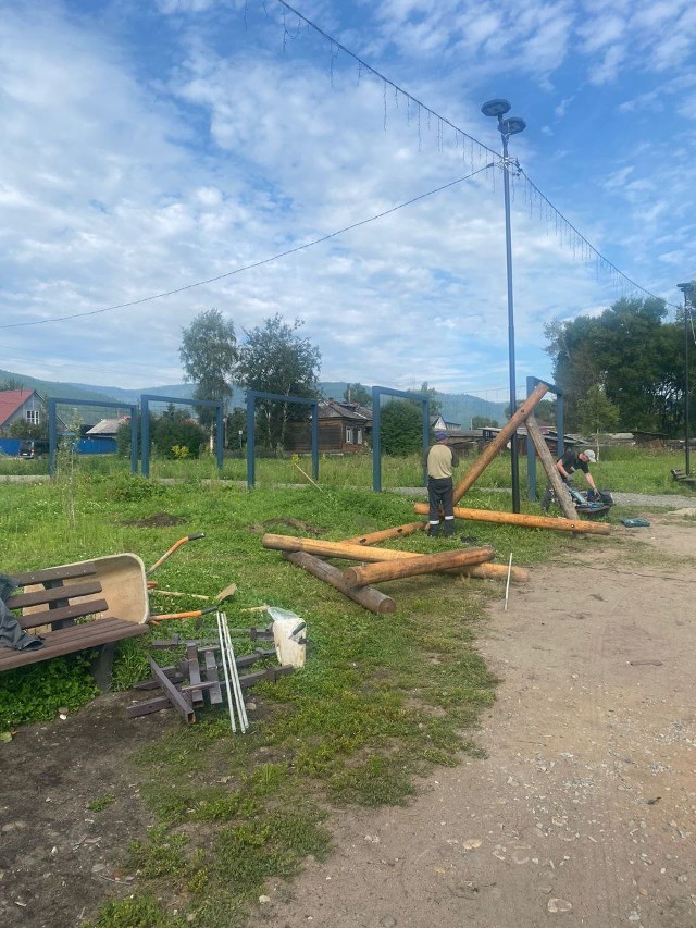 Чистка дорожного полотна (ул.Байкальская),монтаж качели "гнездо"(береговая линия),внутренняя уборка биотуалетов,ежедневная косьба растительности,восстанавливаем уличное освещение (ул.Советская).