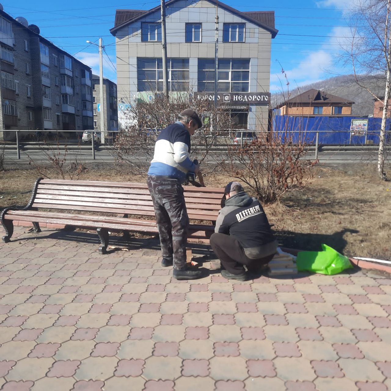 Ремонт лавочек (аллея ЗАГС),продолжаем уборку мусора на кладбище...