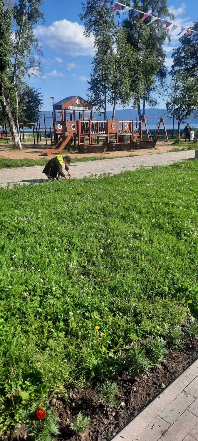 Прополка саженцев,уборка мусора (п.Железнодорожник)