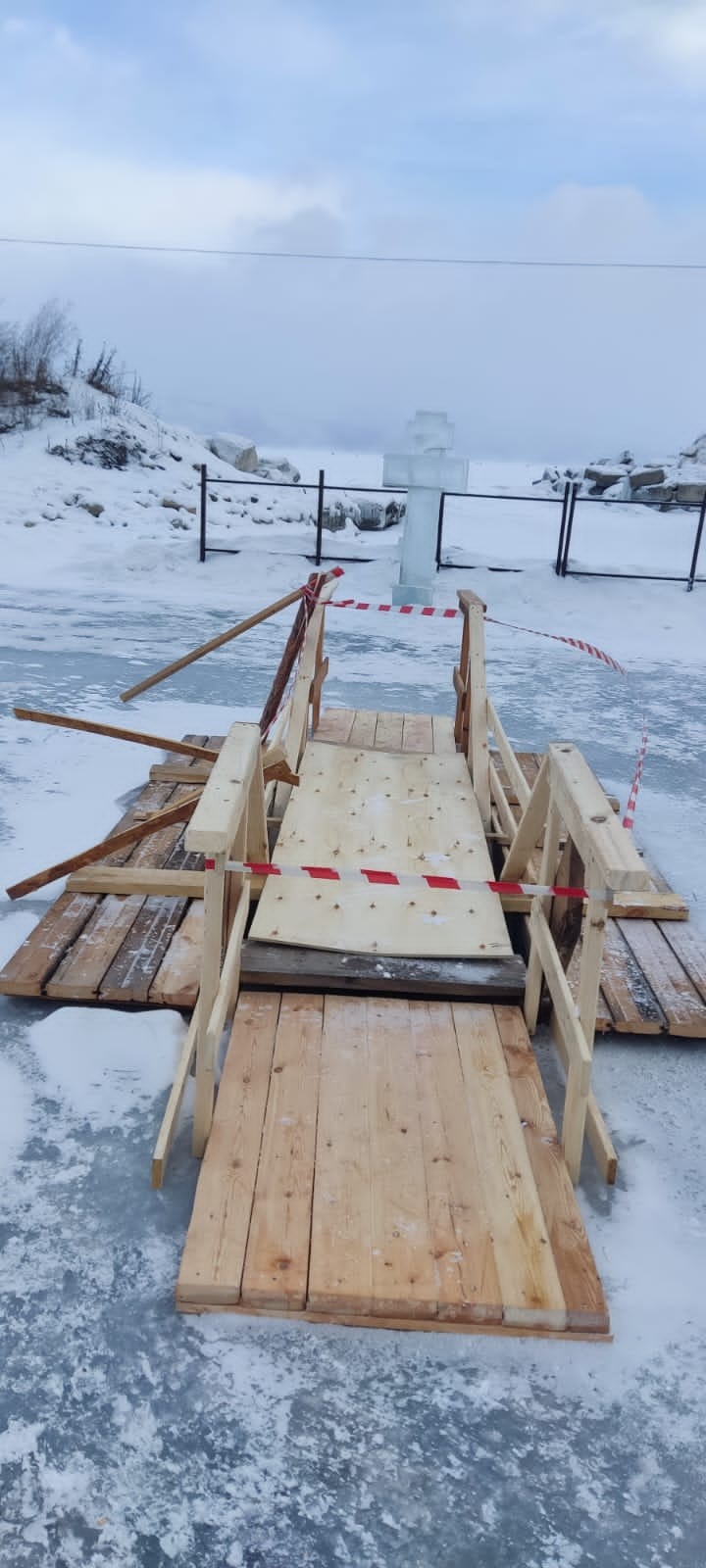 МБУ «Благоустройство»подготовили Иордань,установили ограждение и ледяную скульптуру в форме креста.