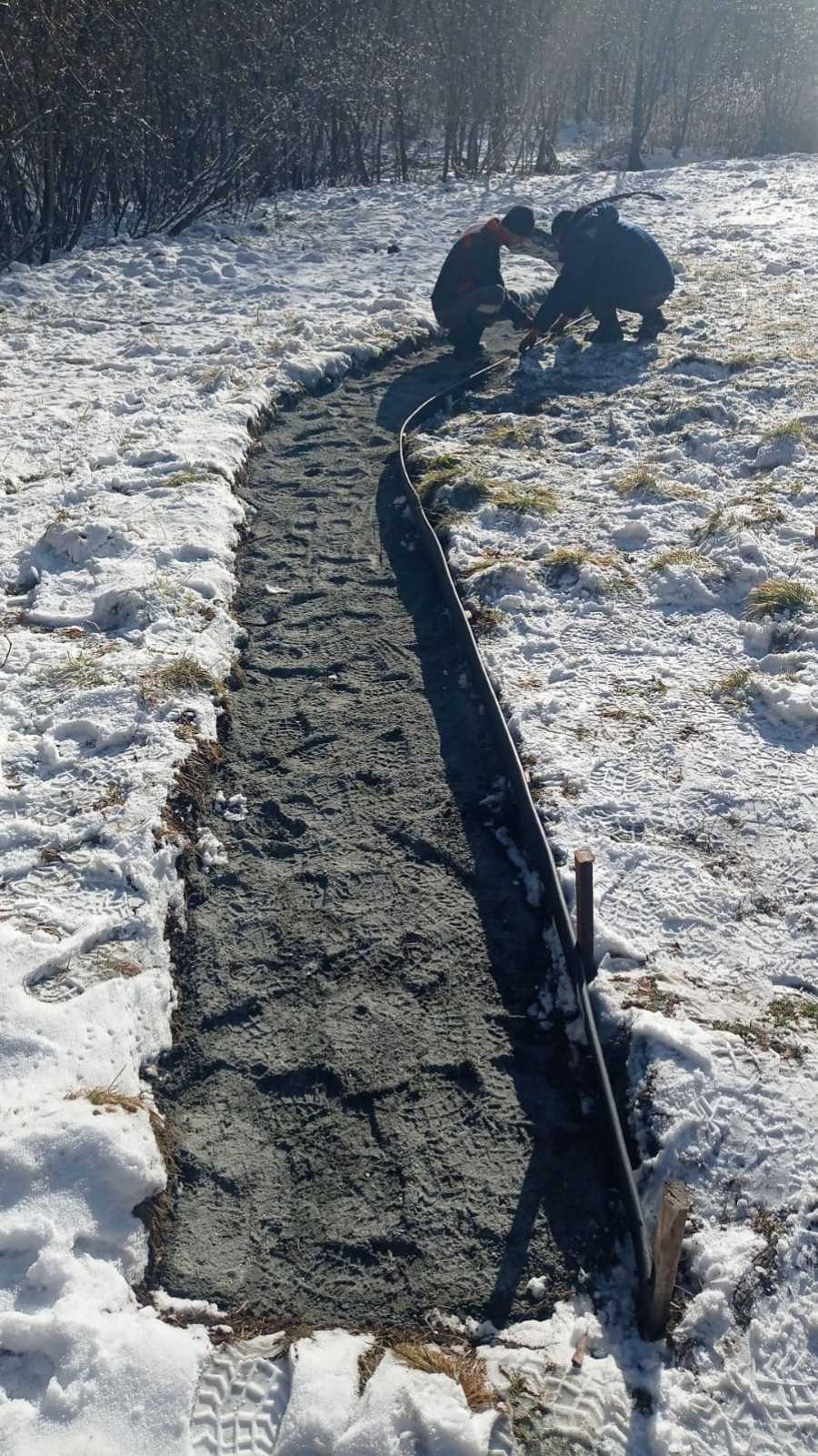Устройство босоногой тропы (поляна Деда мороза),планировка дорожного полотна (пер.Базовый),ежедневный вывоз КГО.
