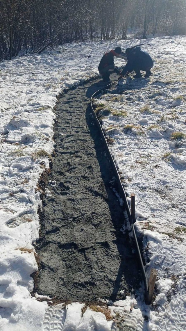 Устройство босоногой тропы (поляна Деда мороза),планировка дорожного...