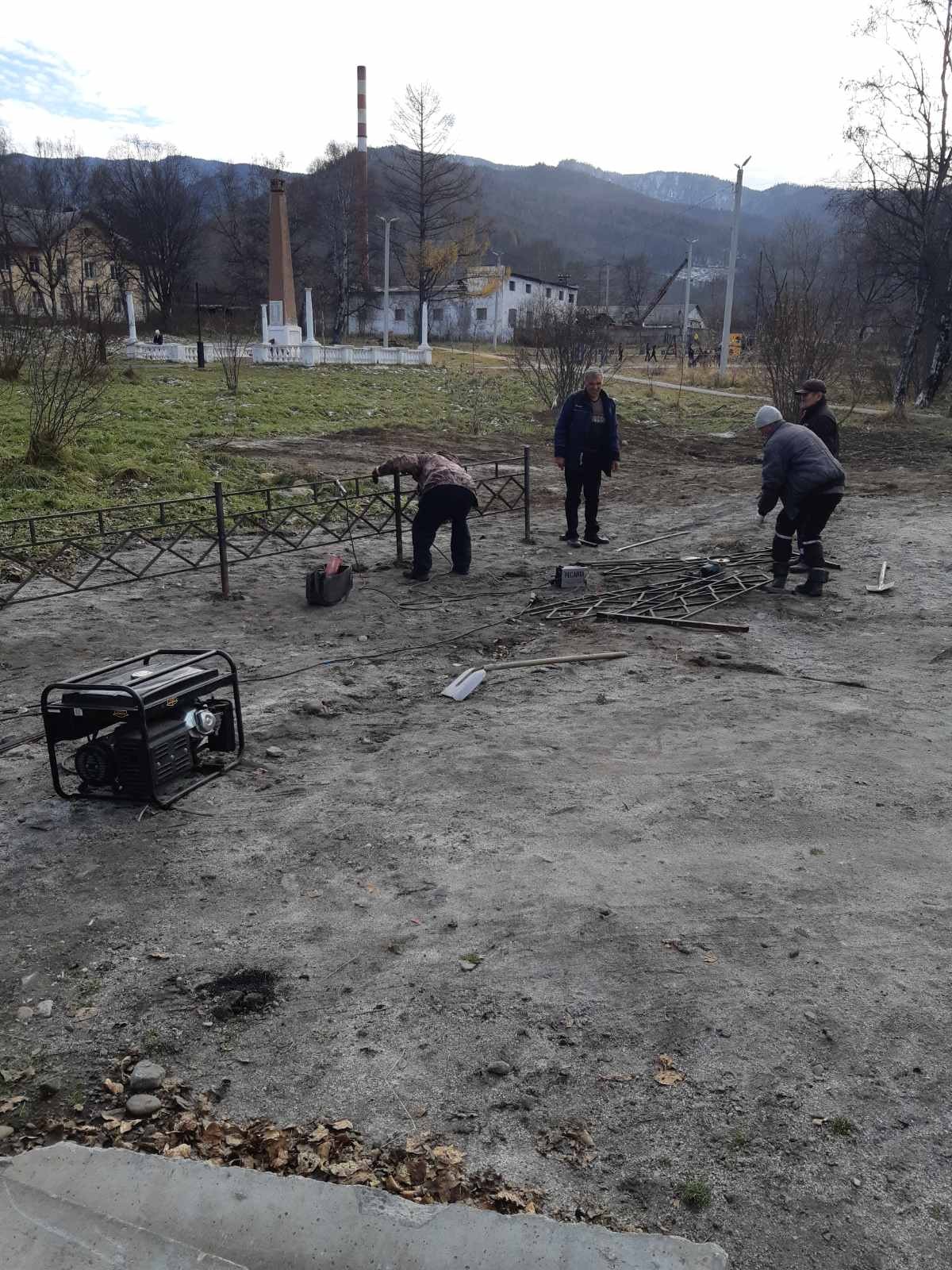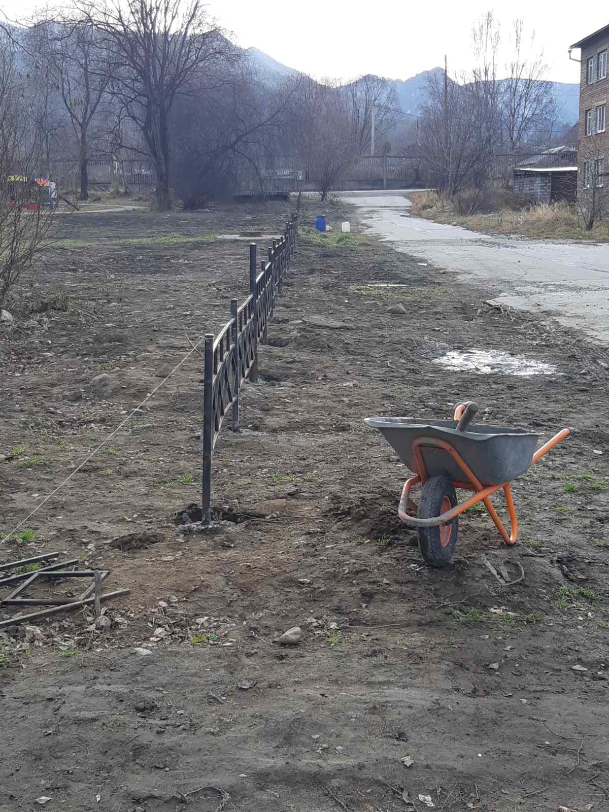Продолжаются ремонтные работы ограждения (парк Слюдянских Красногвардейцев)