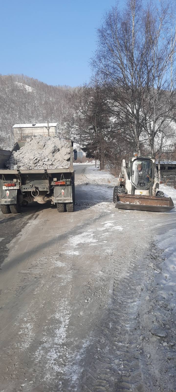 Чистка дорог от снежных накатов: ул.Парижской Коммуны,ул.Полевая