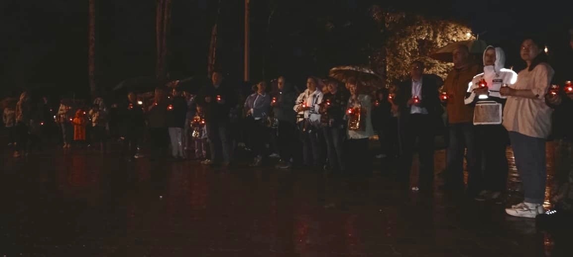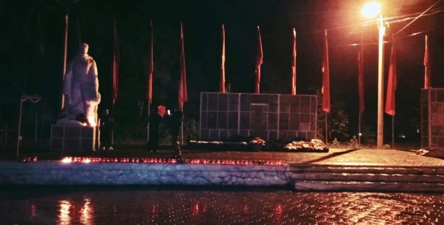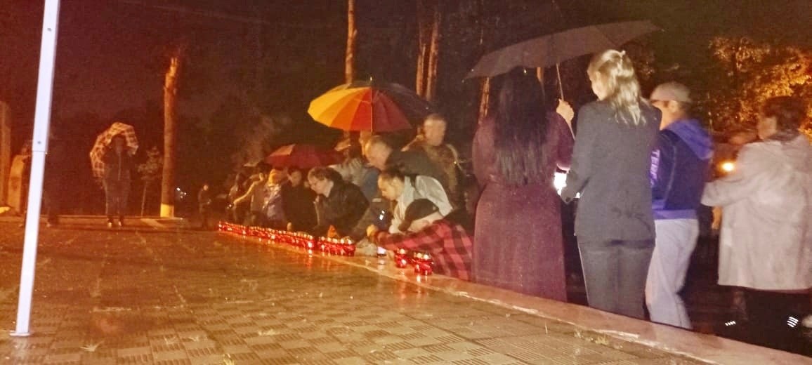 В 22.00, не смотря на дождь и слякоть, горожане собрались у мемориала погибшим воинам, чтобы зажечь свою свечу. Жители приходили с детьми, друзьями, целыми семьями.