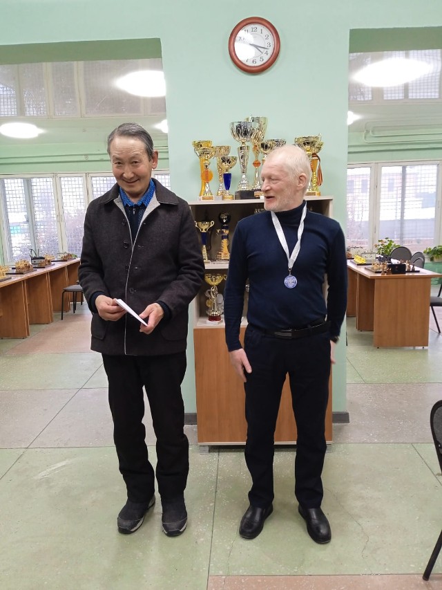 29.12.2024 состоялись соревнования на переходящий Кубок главы администрации города Слюдянка. Было много гостей из Бурятии. Кроме Слюдянцев приехали гости и из Байкальска. Настоящим радостным шоком было прибытие на соревнования деда Мороза. Он, совместно с председателем Думы администрации Слюдянского муниципального образования Кайсаровым поздравили участников с наступающим Новым годом, пожелали удачи в предстоящем турнире. И вновь борьба за заветный 🏆была очень жаркой. Не было фаворита. Всё решалось в последнем, решающем туре где "скрестили мечи" Павлов Виктор (обладатель Кубка) и Пинясов Игорь. Последний, наверное, был больше настроен на победу и в честной, напряжённой борьбе выиграл обе партии завоевал данный трофей. По итогам турнира Павлов Виктор остался на третьем месте. Веретнов Александр занял второе место. В номинации "Лучшая среди женщин" победила Тютрина Евгения (представитель с. Выдрино из Бурятии), в номинации "Лучший среди гостей" Еприцкий Юрий (также представитель с. Выдрино), а в номинации "За шаг до призёра", заняв четвёртое место занял Харин Сергей