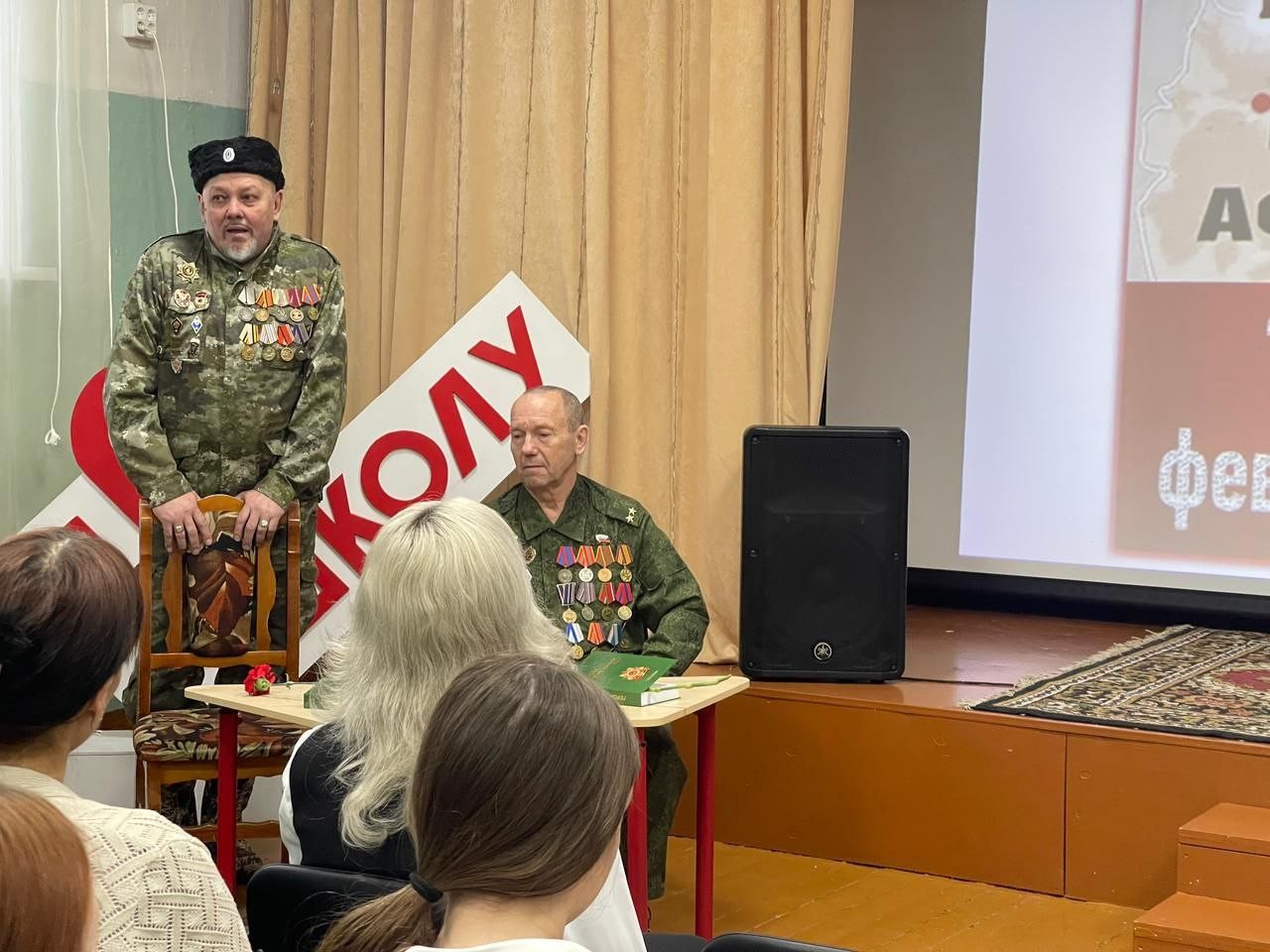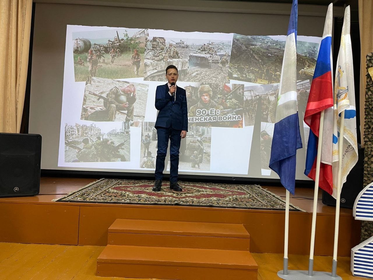 В канун праздника - Дня защитника Отечества Библиотека семейного чтения совместно со 2 школой г.Слюдянка провели праздничное мероприятие, посвящённое этой дате "МЫ ЭТОЙ ПАМЯТИ ВЕРНЫ". Присутствующие вместе с ведущей пролистали странички истории нашей страны, прошли дорогами воинов, защитников нашей Родины. Звучали песни и поэтический строки, посвящённые воинам Великой Отечественной войны, воинам боевых действий в Афганистане и Чечне, воинам СВО. Почётные гости мероприятия, ветераны боевых действий в Афганистане и Чечне - Волков П.А. и Плохотнюк А.В. дали ребятам напутствие честно служить Родине, быть готовыми защищать родную страну, если потребуется, быть достойными подвигов своих дедов и прадедов. Минутой молчания почтили память всех погибших защитников Родины. Завершением стала песня "Аист на крыше" в исполнении учащихся школы, как призыв к миру на всей земле.