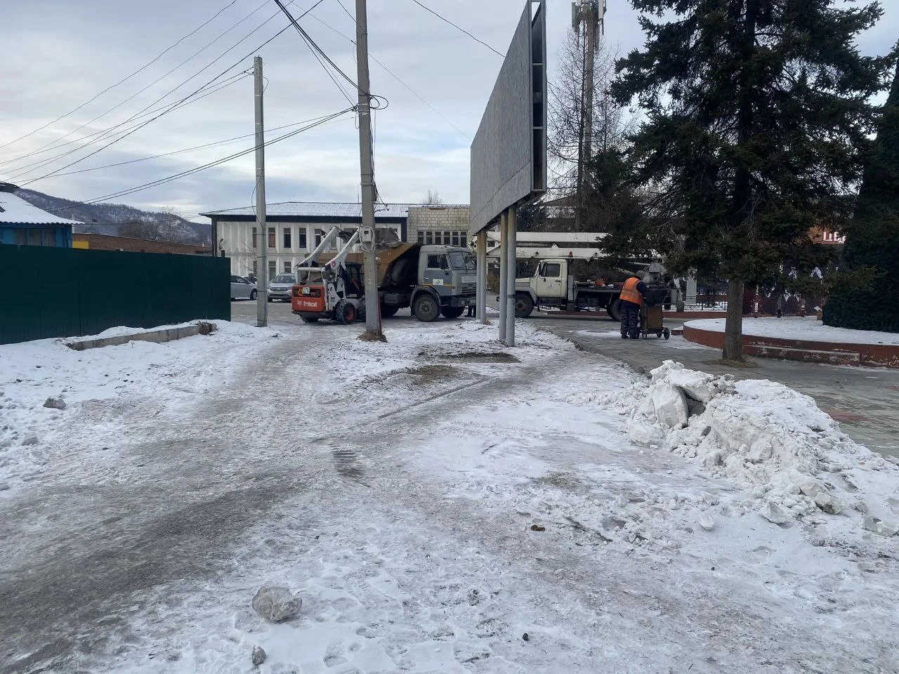 Уборка снега,устройство Новогодней декорации (ц.площадь).