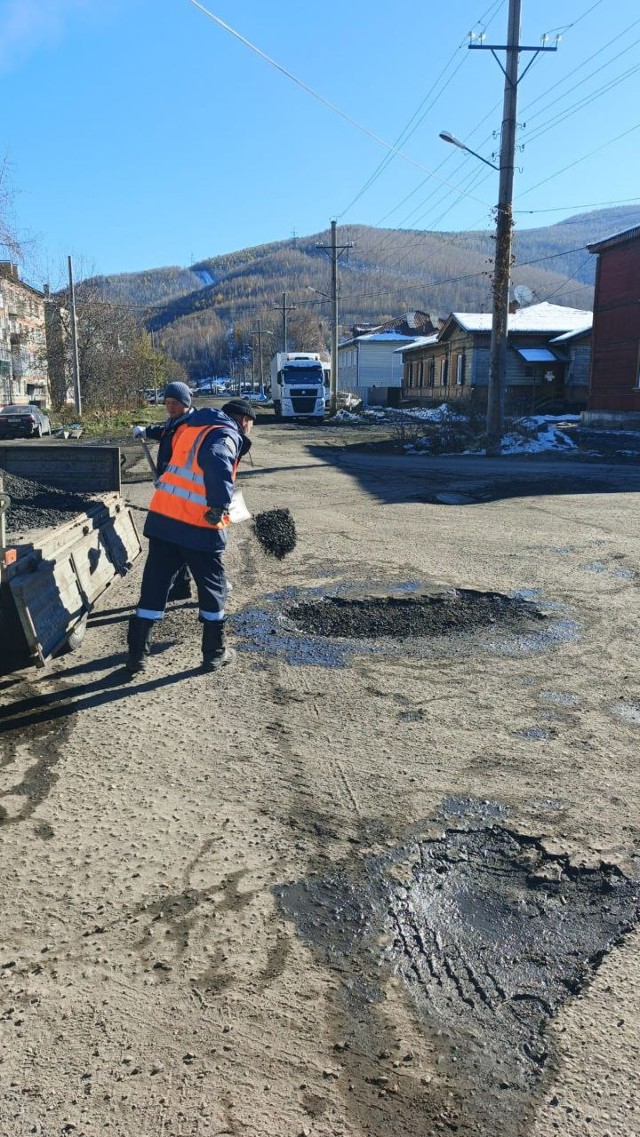 Поправили положение дорожного знака (ул.Слюдянских Красногвардейцев),отсыпка ,ремонт дворовых территорий и дорог общего пользования.