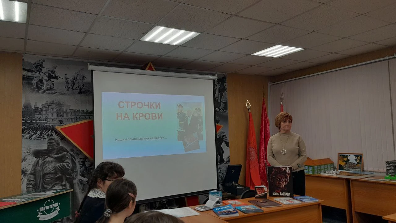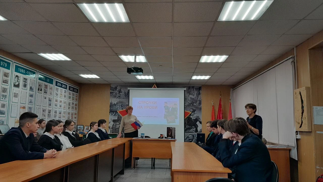 30 января в школе МБОУ «СОШ № 50» Библиотека семейного чтения провела для старшеклассников презентацию книги Ю.И. Баранова "Строчки на крови", стихи которой посвящены воинам-землякам, участникам СВО.