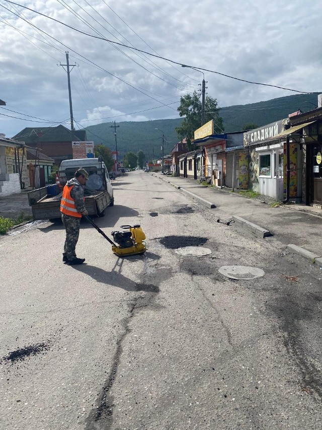 Посадка саженцев,ямочный ремонт (ул.Кутелева,ул.Ленинградская,ул.Комсомольская,ул.Колхозная),покраска входной группы на кладбище,косьба растительности.