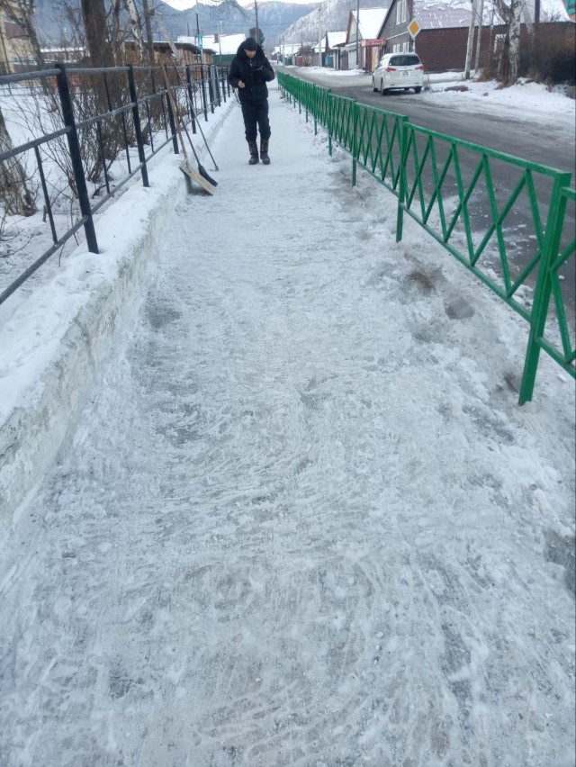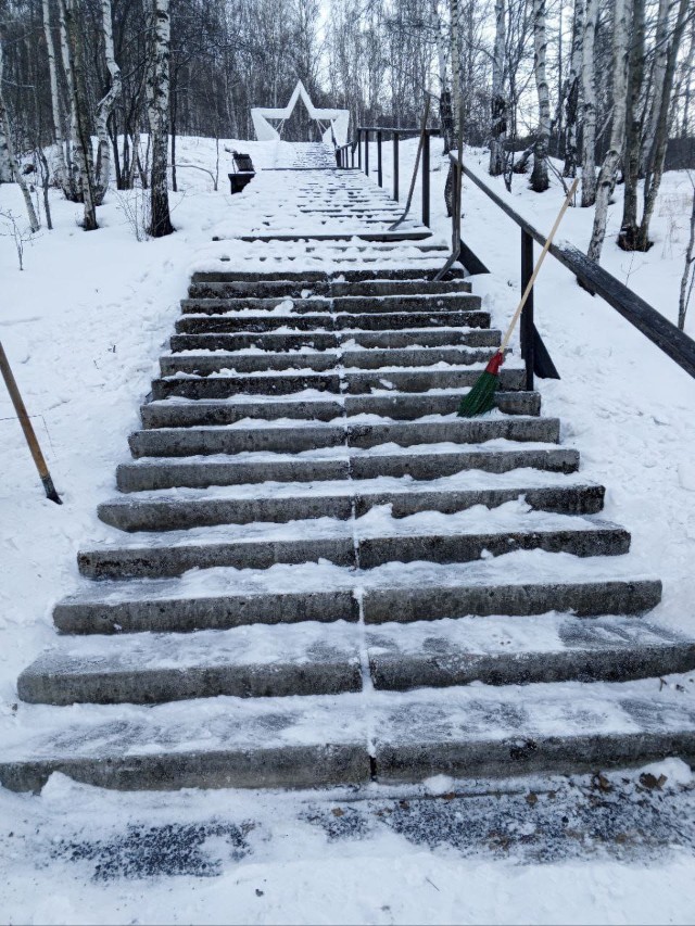 Заливаем горку (экотропа),чистим пешеходные тротуары,ремонт фотозоны после вандализма,уборка снега (мемориал "звёздочка").