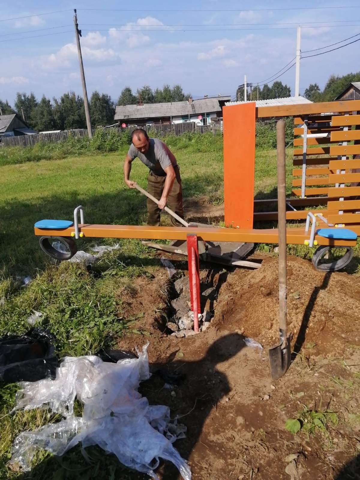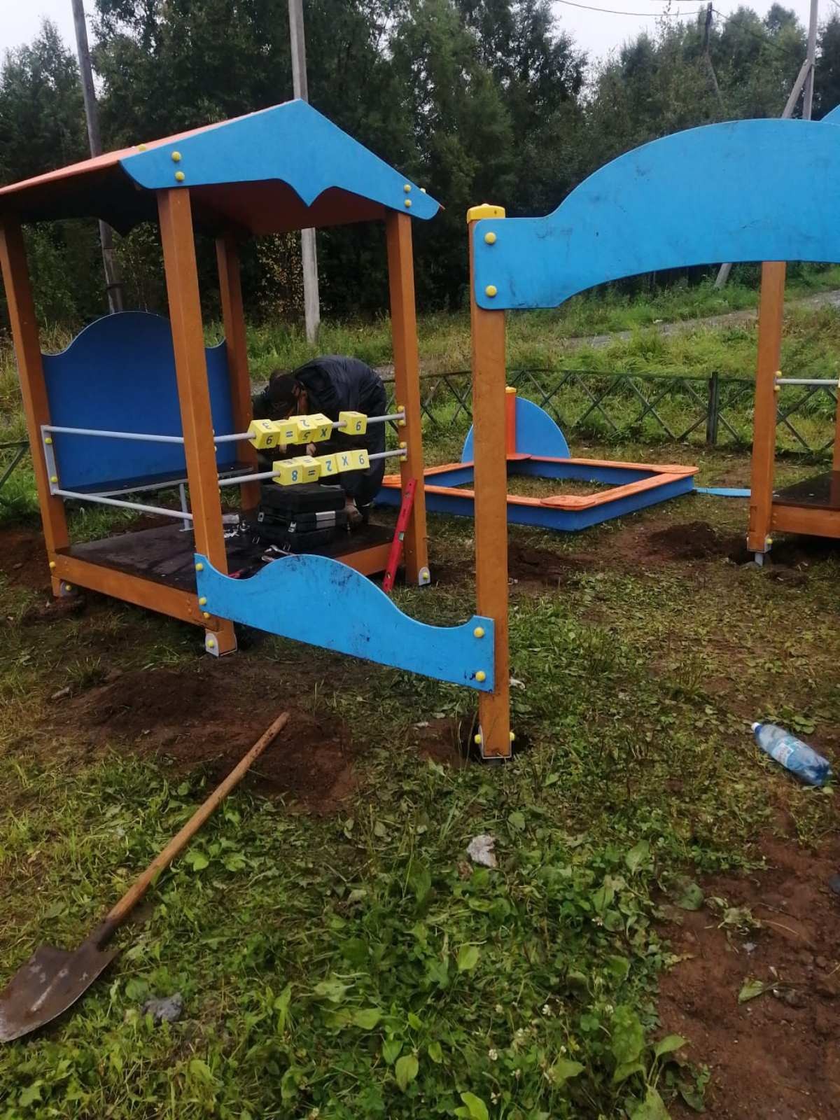 Продолжается монтаж детского игрового комплекса (п.Буровщина).