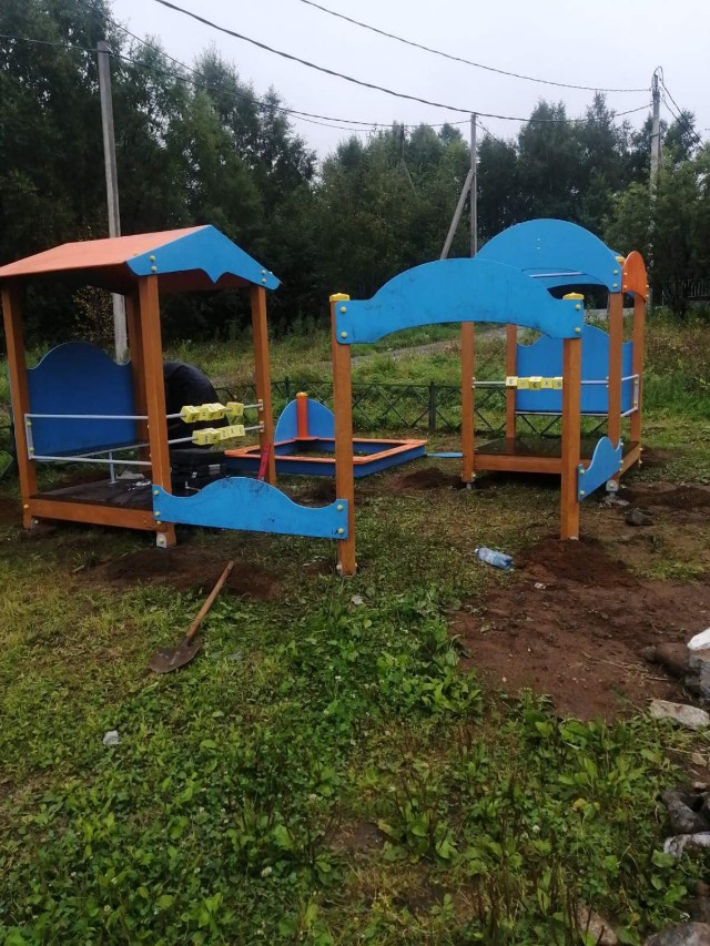 Продолжается монтаж детского игрового комплекса (п.Буровщина)...